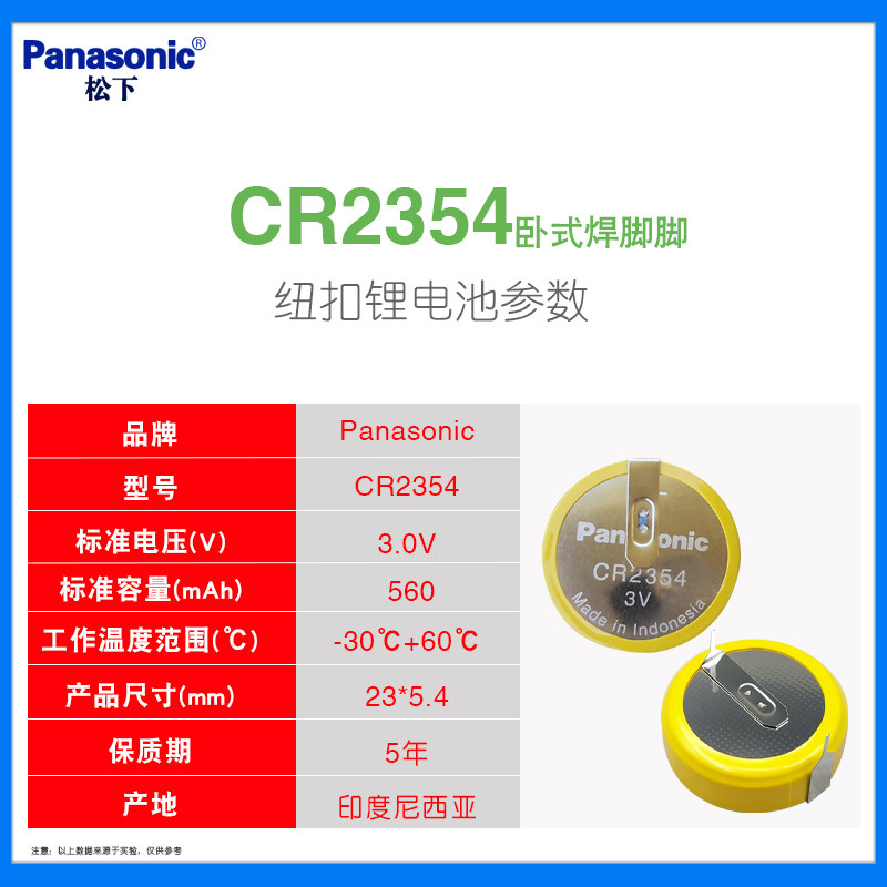 松下CR2354锂电子纽扣电池3V 电饭煲面包机 特斯拉钥匙主板仪器表