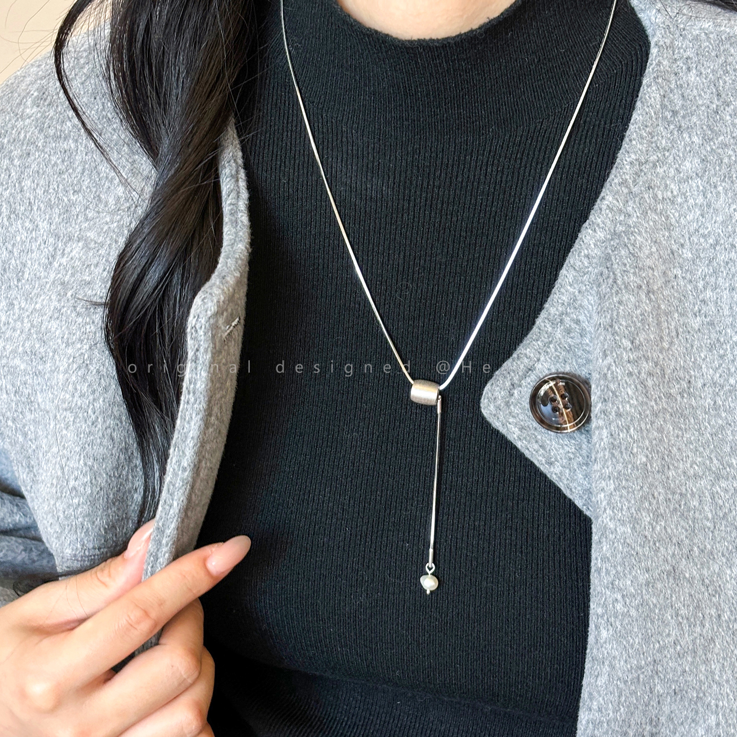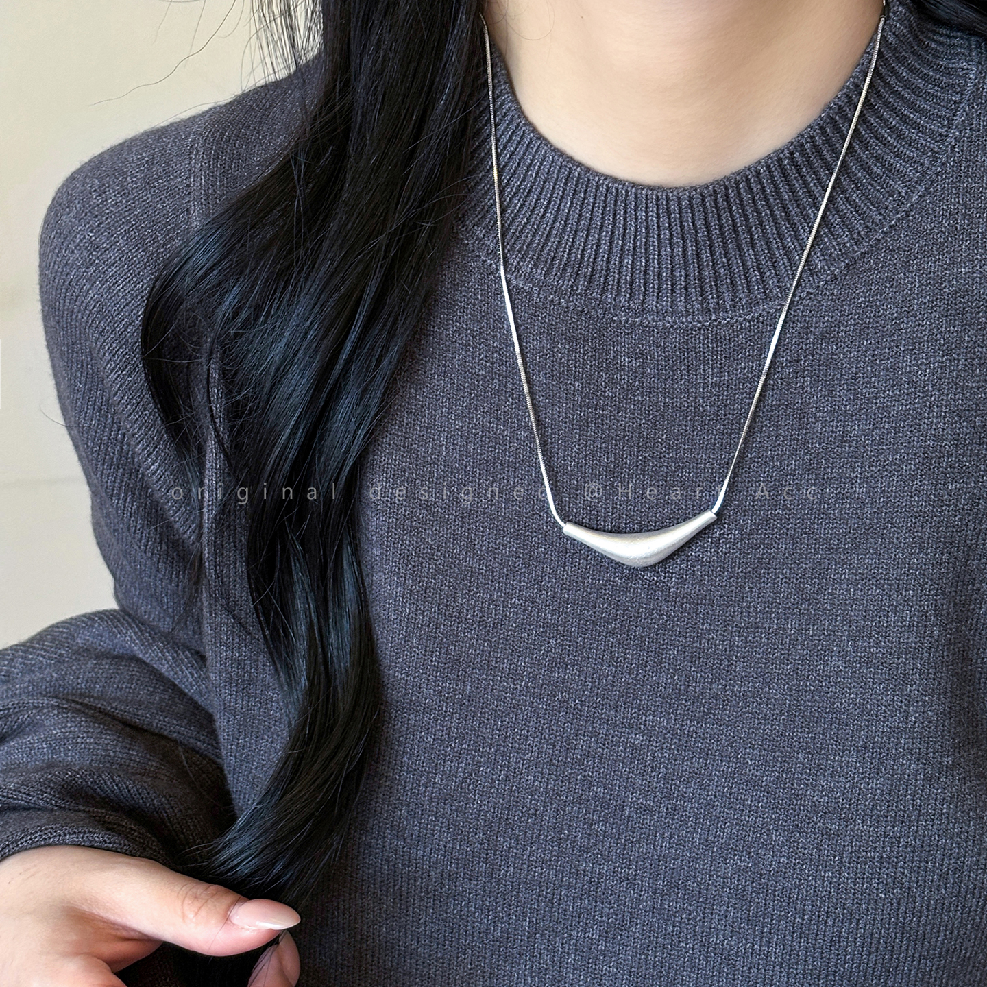 韩系银色拉丝爱心项链女简约冷淡风长款毛衣链时尚高级百搭卫衣链