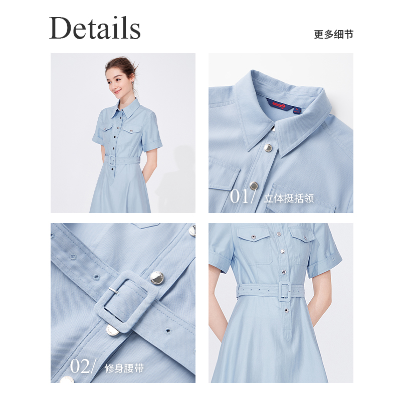 Navigare意大利小帆船短袖连衣裙女2025夏季新款通勤工装衬衫裙