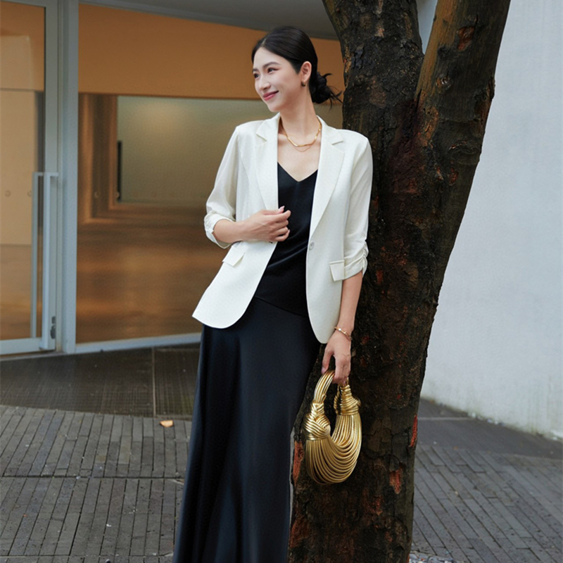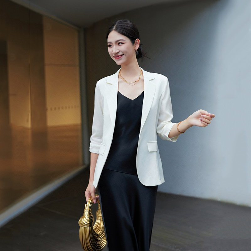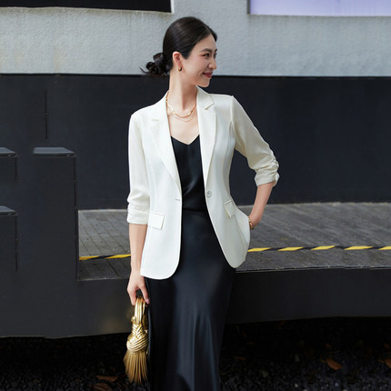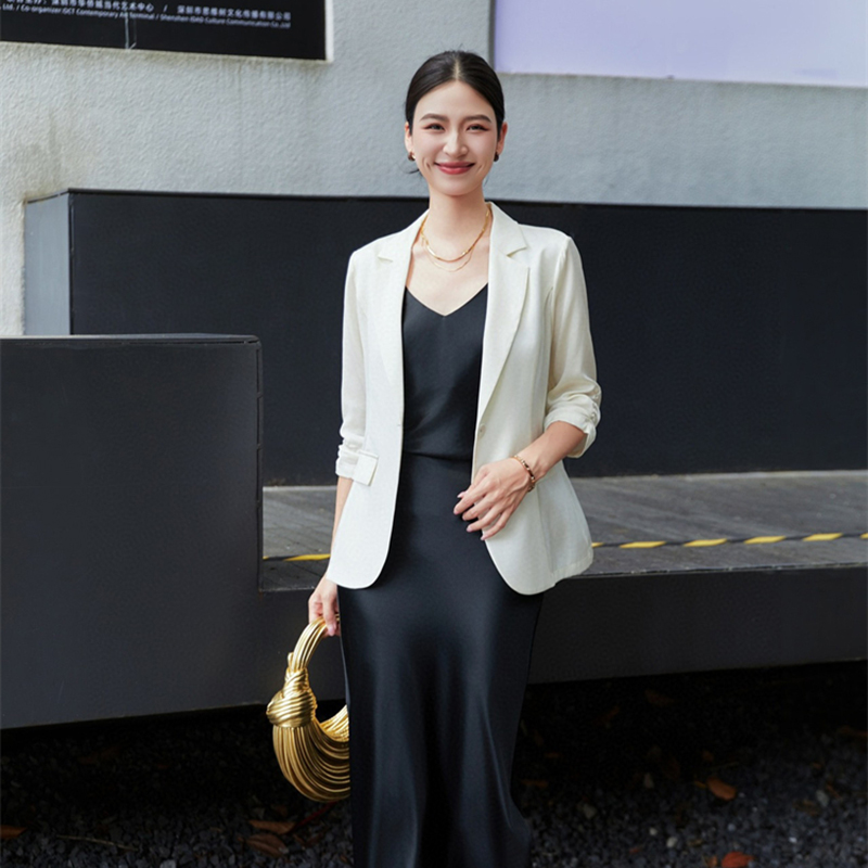 2025夏款职业休闲19纳米真丝一粒扣时尚高级感百搭双乔小西装外套