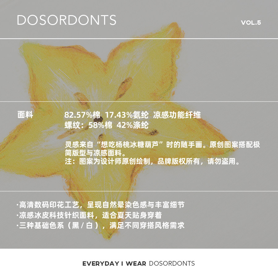 DOSORDONTS 2025秋季新款简约设计杨桃手绘康丽机数码印花短袖T恤
