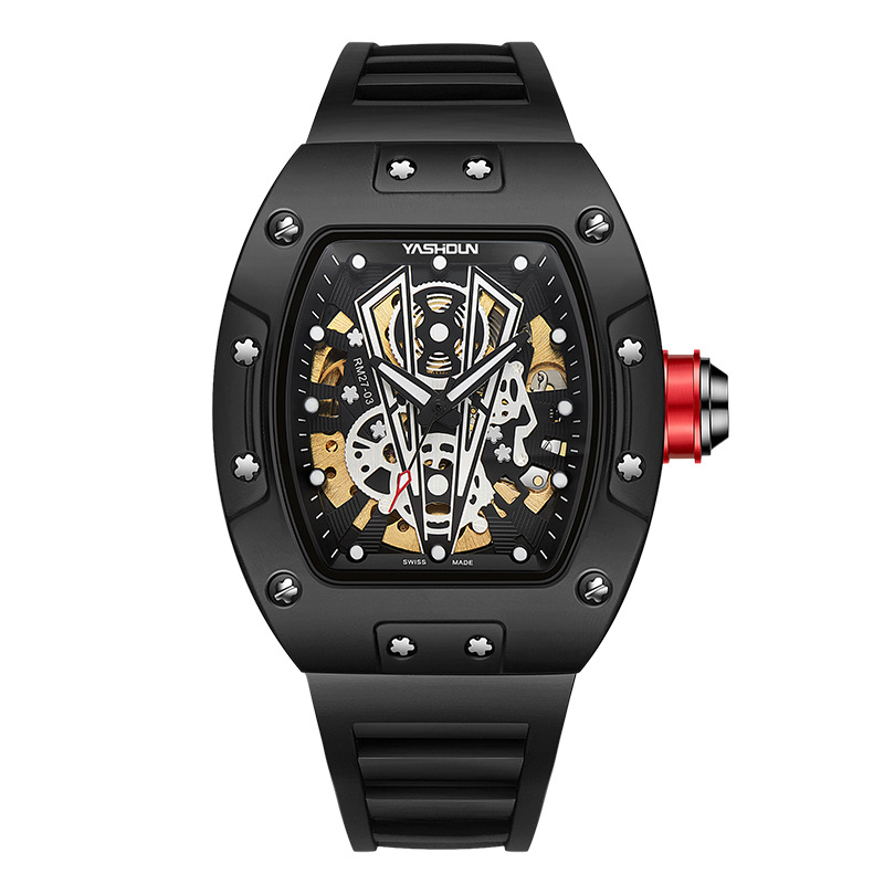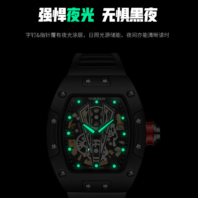 沃力仕男士机械手表大表盘男表 镂空时尚防水休闲手表男