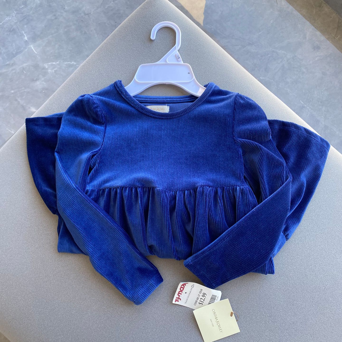 外贸单出口秋冬春女童简约绒长袖柔软儿童垂顺圆领女孩裙子连衣裙