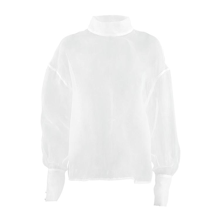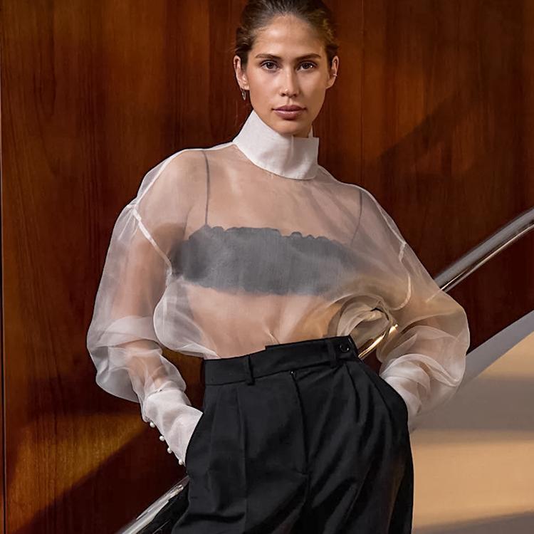 欧美女士衬衫白色网纱透明感长袖衬衣时尚2025新款夏季休闲