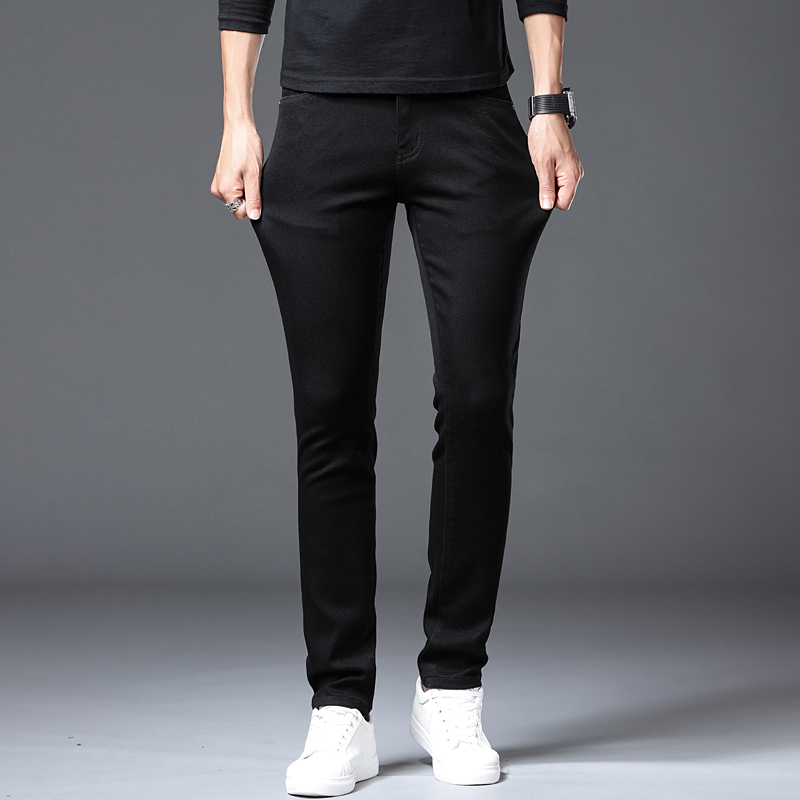 高端秋季纯黑色弹力牛仔裤男修身小脚潮牌韩版潮流休闲百搭长裤子
