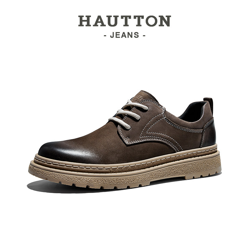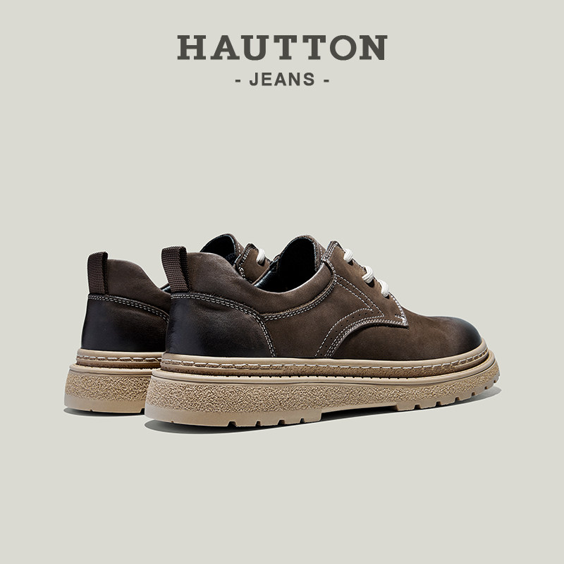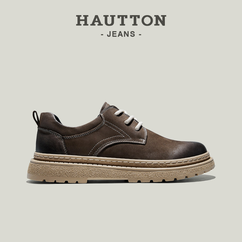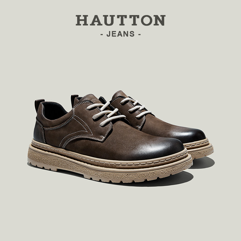 HauttonJeans复古工装鞋男2025冬季真皮英伦厚底休闲皮鞋户外男鞋