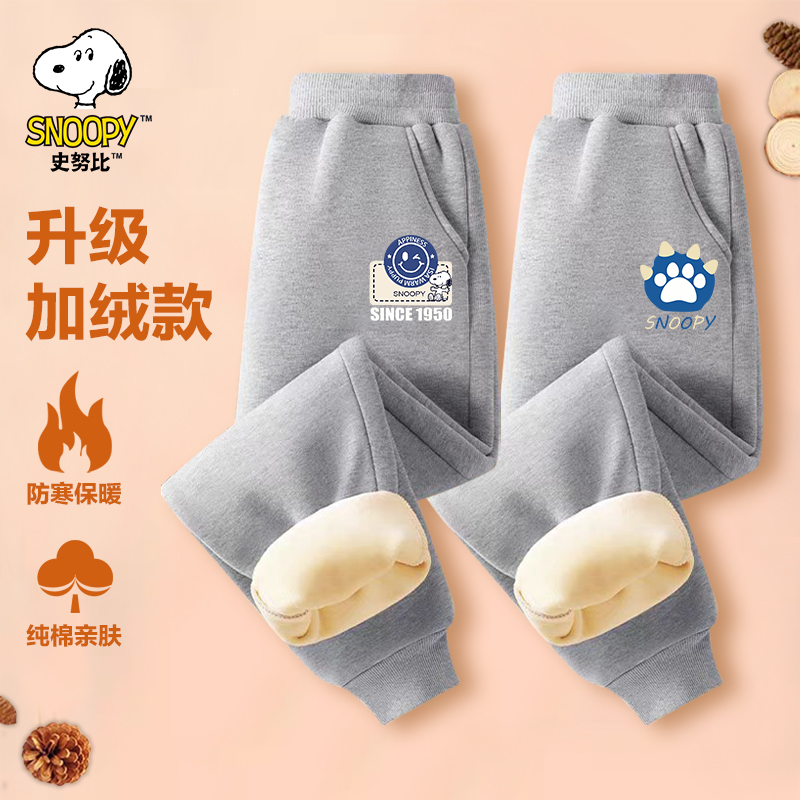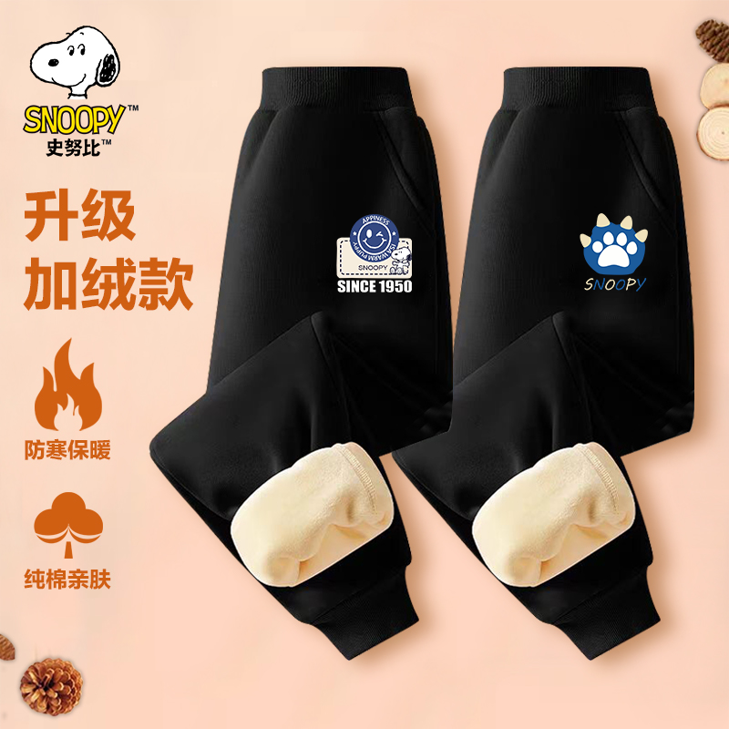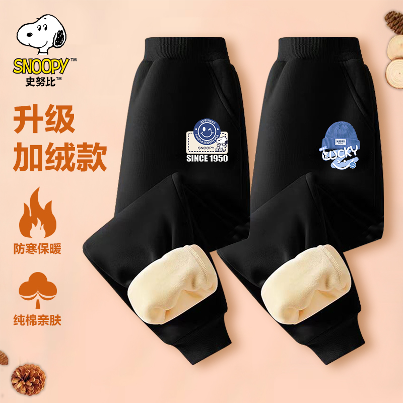 史努比男童加绒裤子冬季2025新款秋冬卫裤一体绒羊胎绒儿童冬装