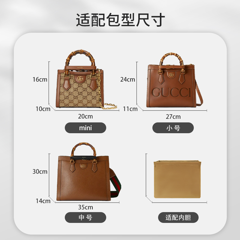适用Gucci古驰Diana竹节托特包内胆mini小号中号尼龙内衬收纳轻薄