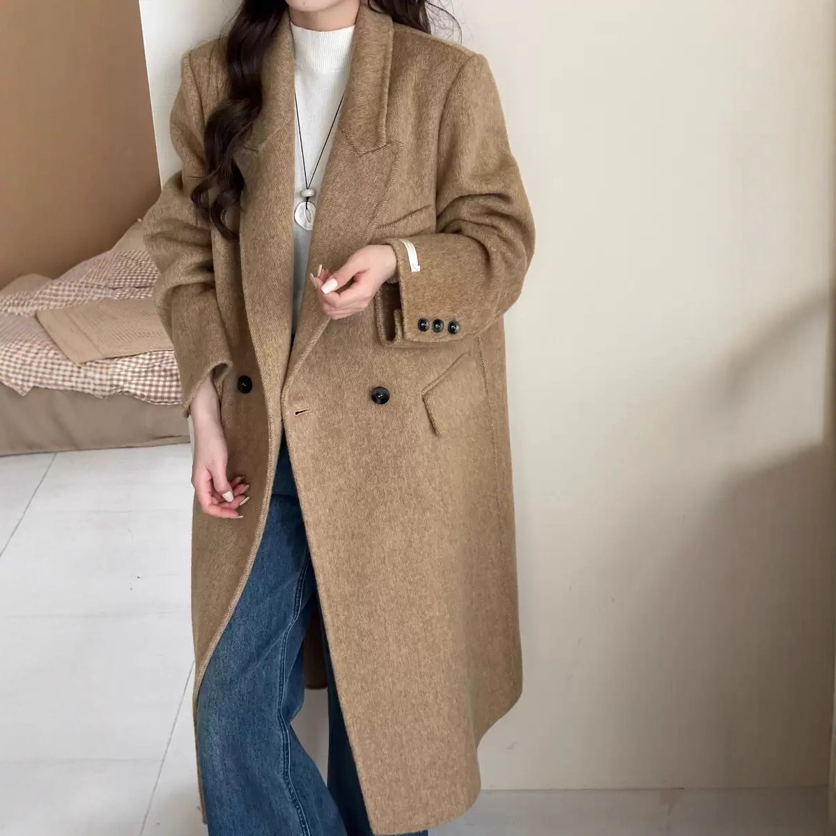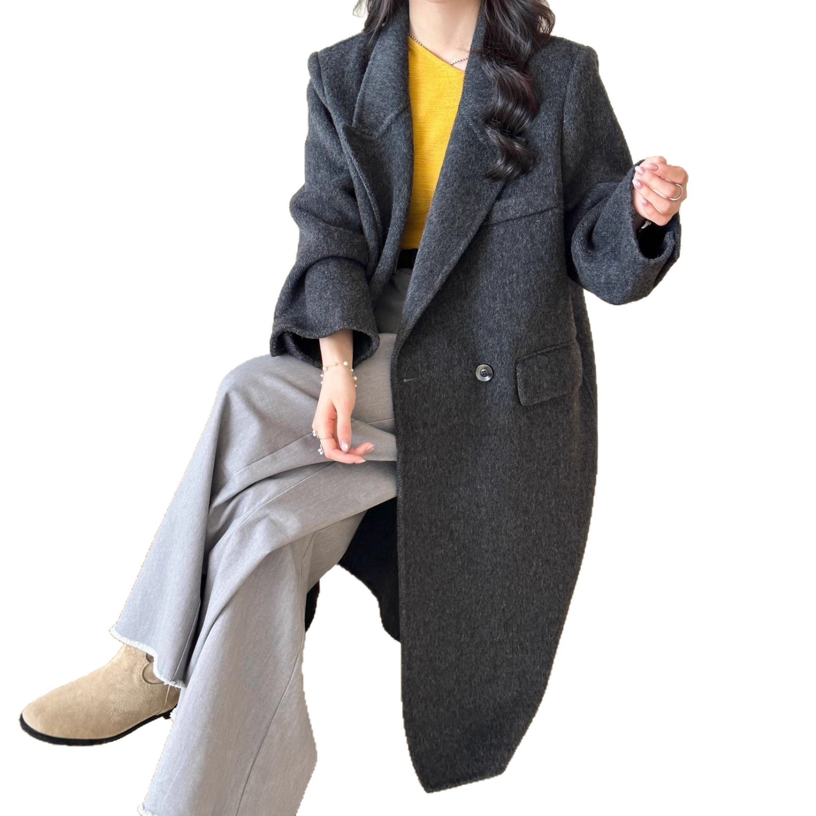 秋冬新款高级感韩系双面羊毛绒大衣毛呢西装领长款显瘦羊毛外套