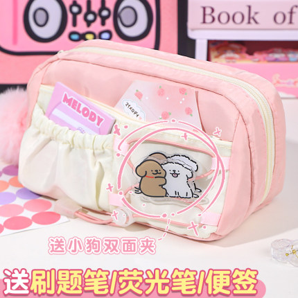 线条小狗笔袋高颜值ins风文具盒女孩儿童公主铅笔盒简约透明痛包