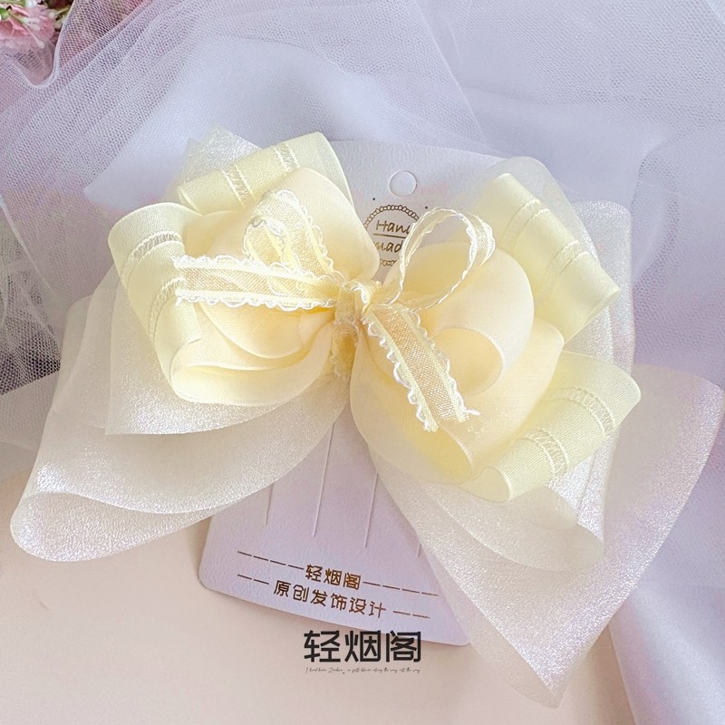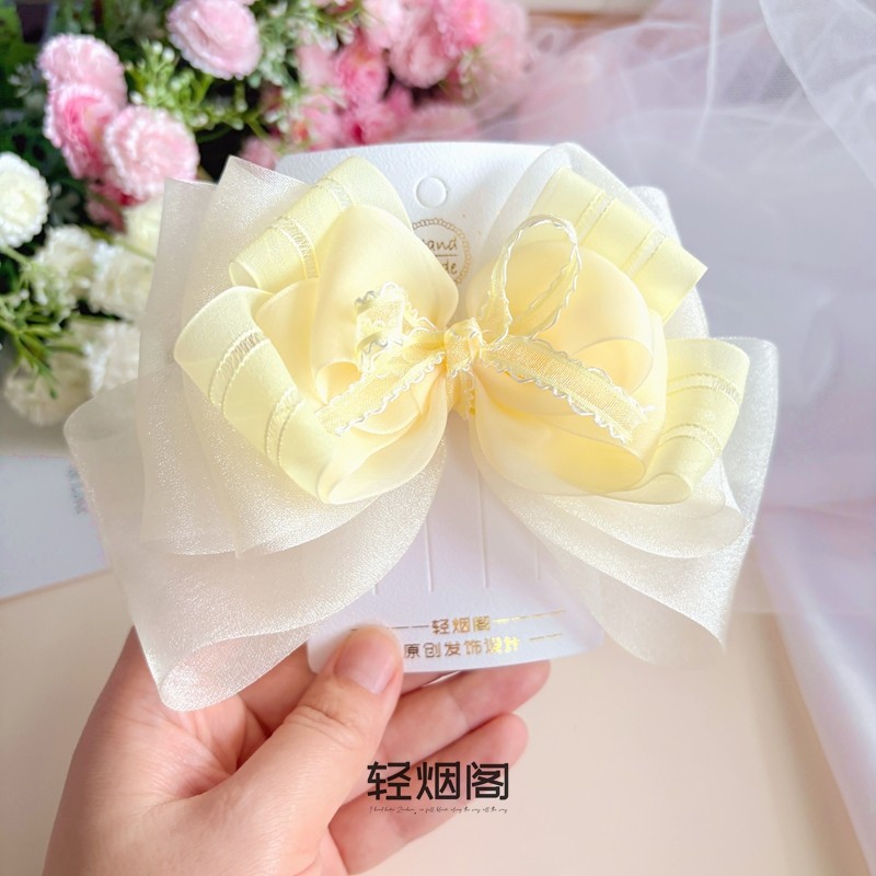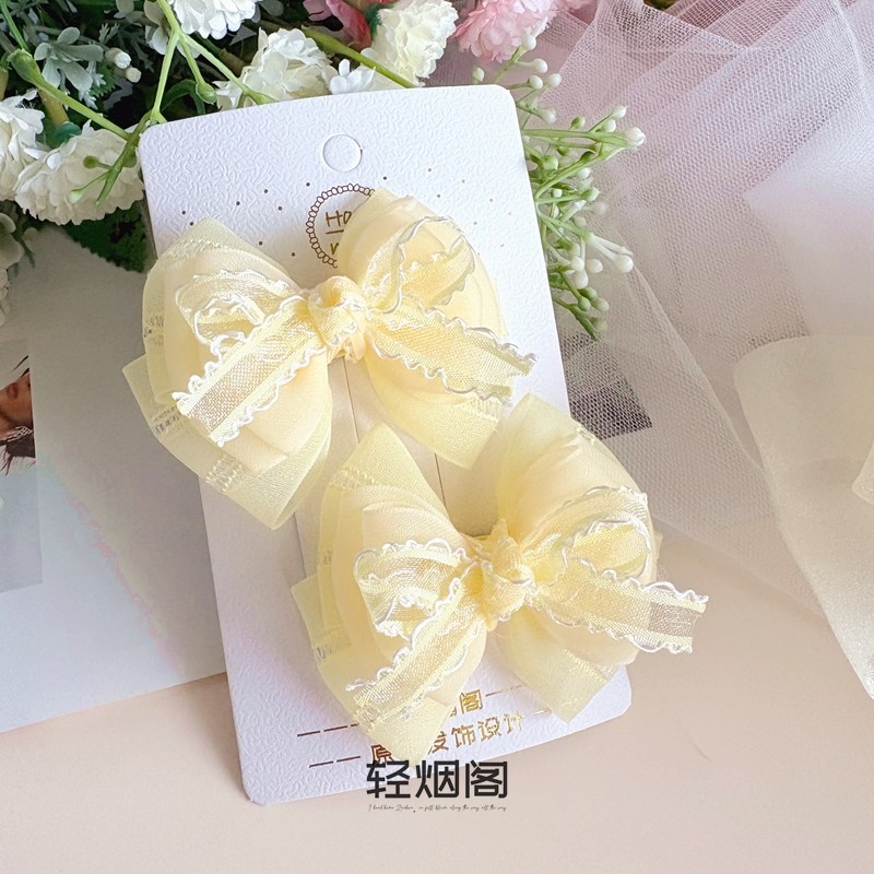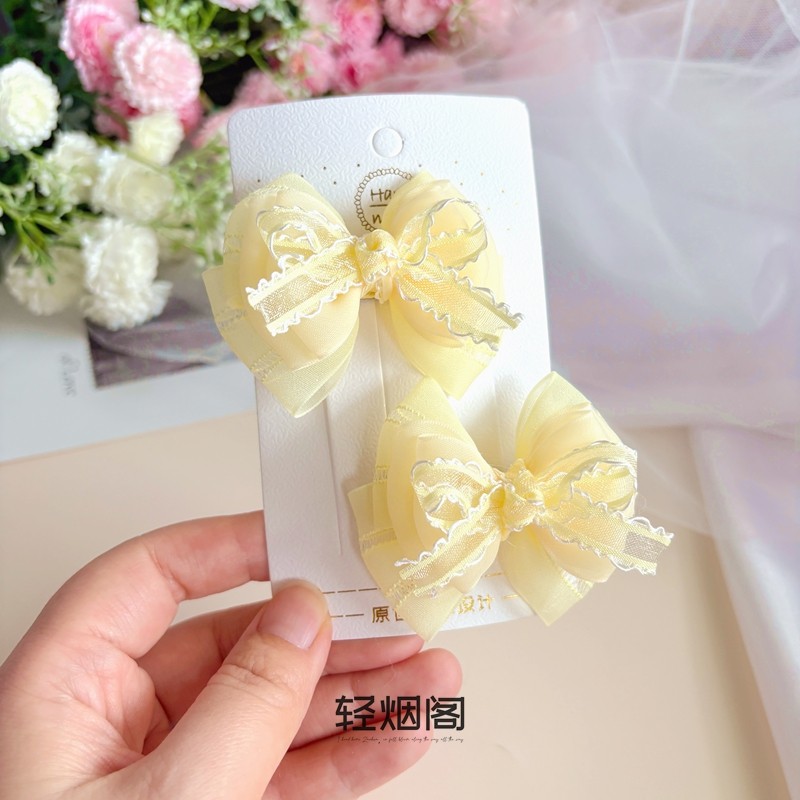轻烟阁 A235浅黄色可爱公主蝴蝶结发饰头饰大顶夹小对夹儿童