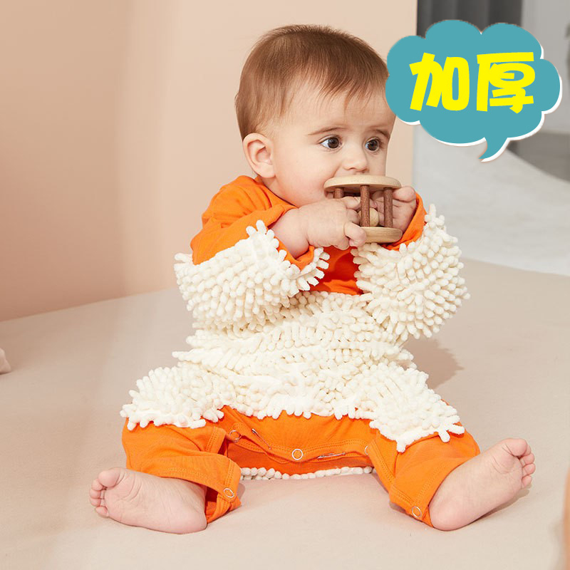婴儿爬行服宝宝爬爬服拖地连体哈衣防脏擦地罩衣拖把服装春秋冬季