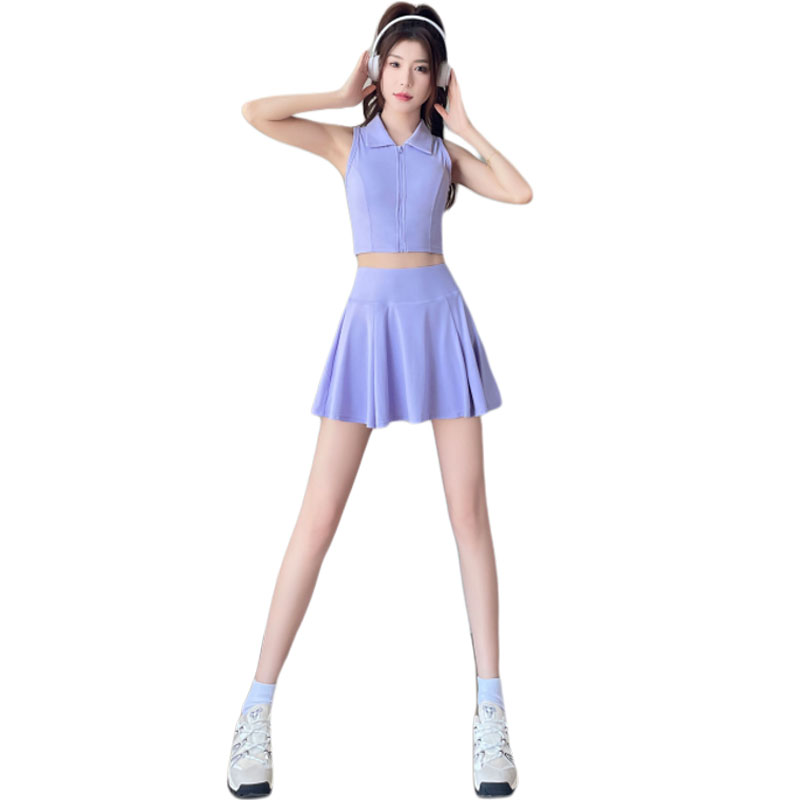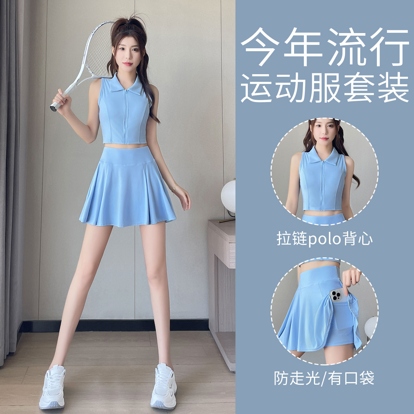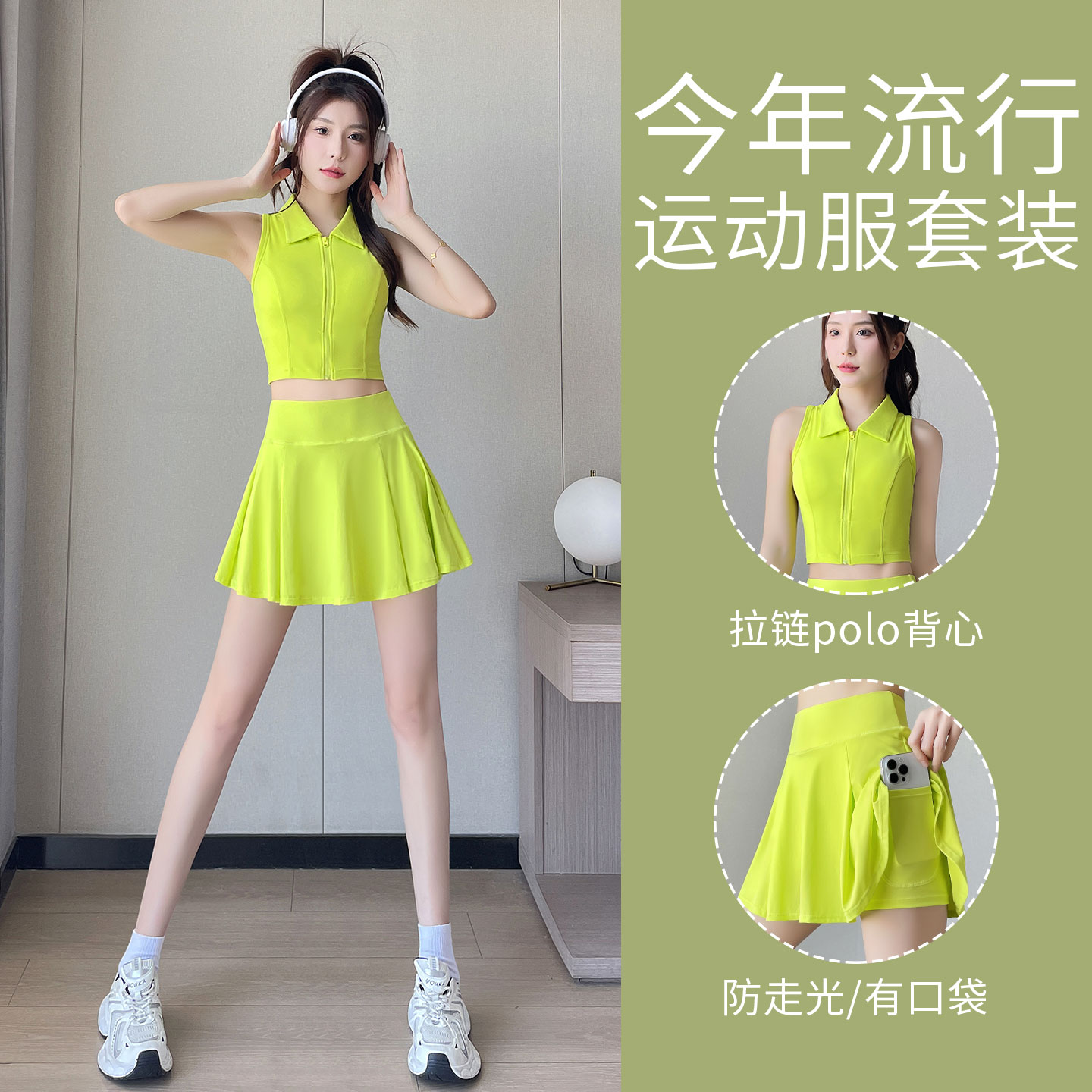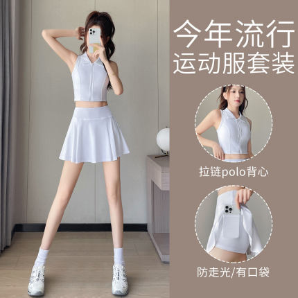 网球运动套装女2025新款白色羽毛球服跑步短裙晨跑服时尚polo背心