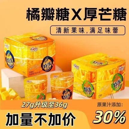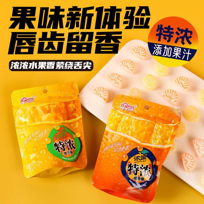 利强网红零食糖橘子芒果味水果糖厚芒糖橘瓣糖特浓3D造型果汁硬糖