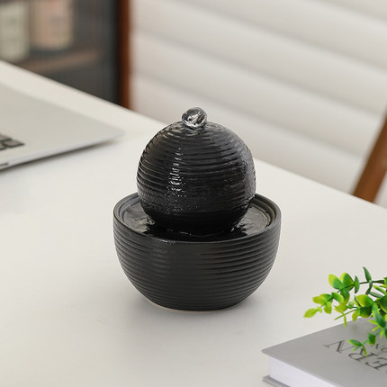 创意陶瓷流水摆件循环水招财客厅小型办公桌面装饰造景风水轮礼物