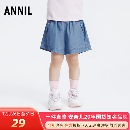 安奈儿女童装牛仔短裤夏季款宝宝宽松休闲裙裤童趣百搭洋气