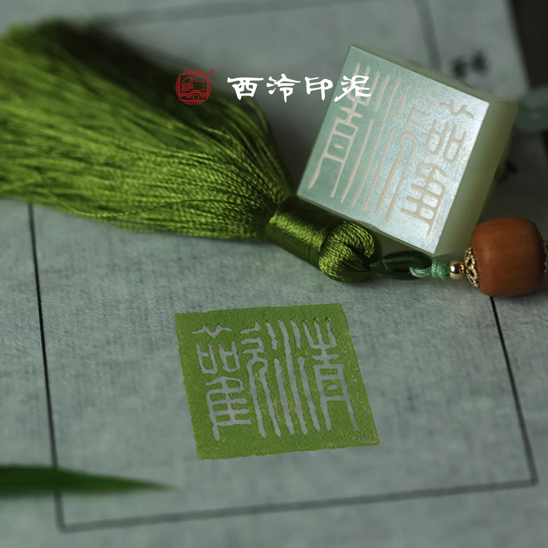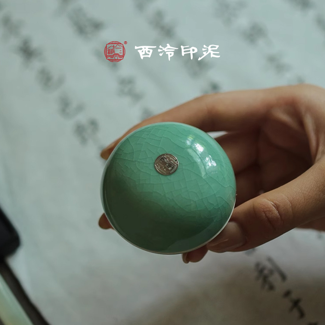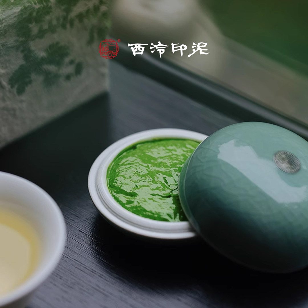 西泠印泥竹青瓷缸印泥印章专用便携印泥盒文房四宝书画礼品书法用品高级感商务伴手礼生日礼物