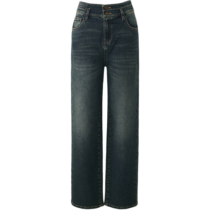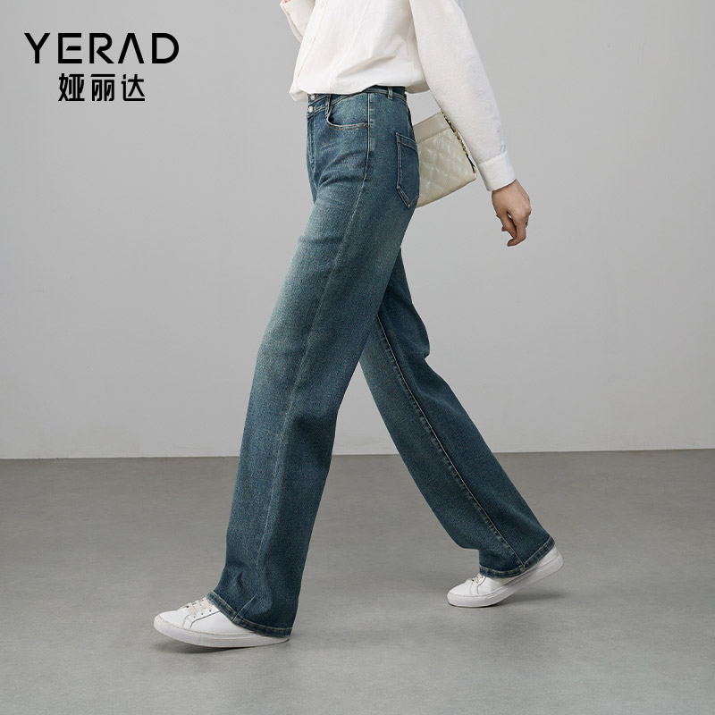 娅丽达高腰显瘦窄版阔腿牛仔裤