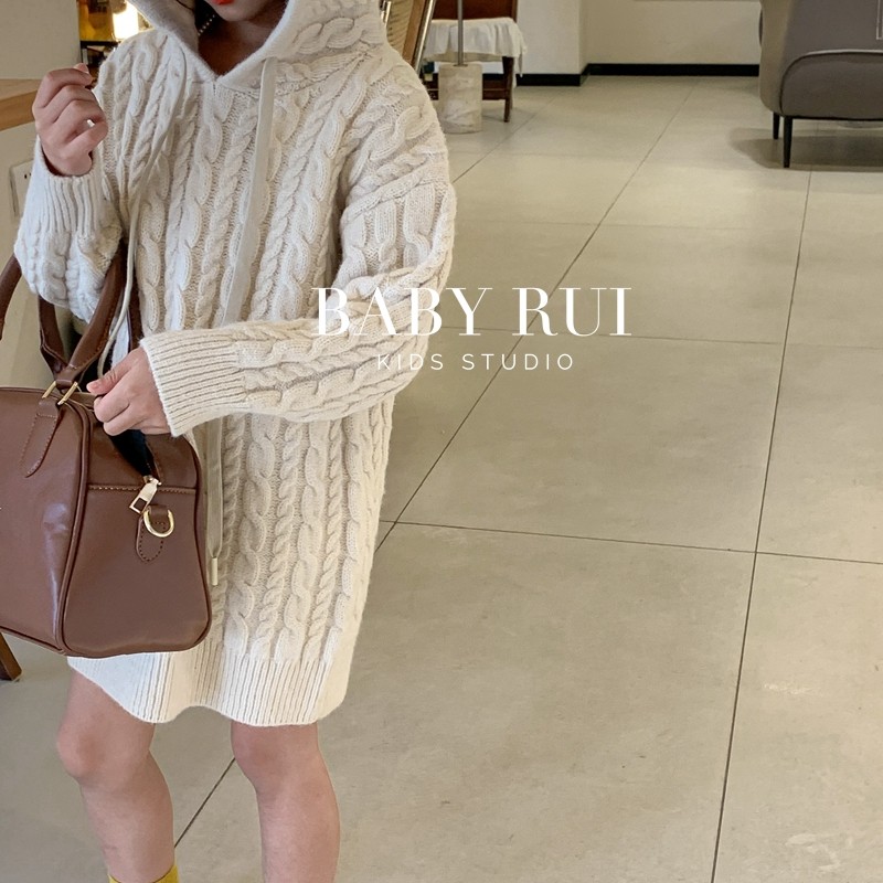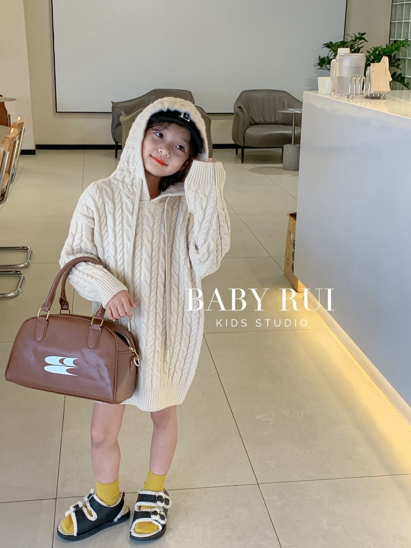 连帽毛衣裙品牌女童装儿童冬季麻花中长款套头针织衫毛衣连衣裙