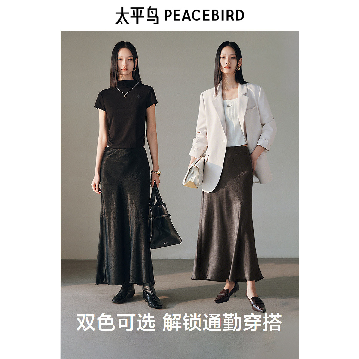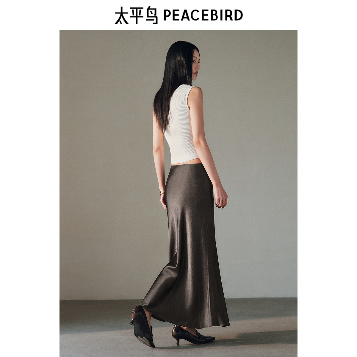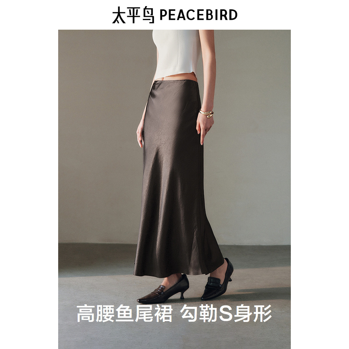 太平鸟女装醋酸鱼尾长裙秋季高级缎面气质包臀半身裙裙子