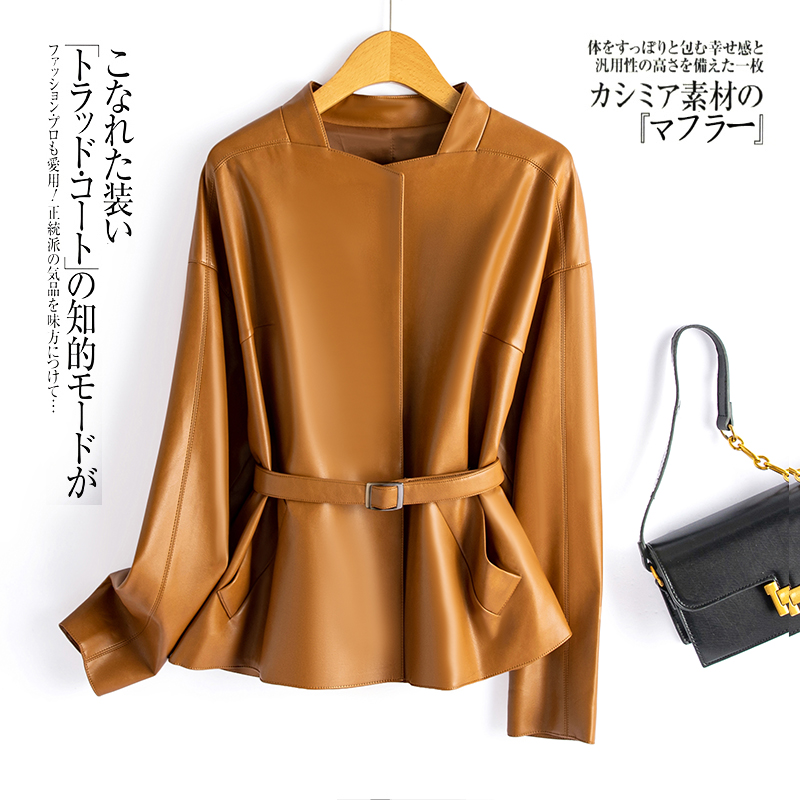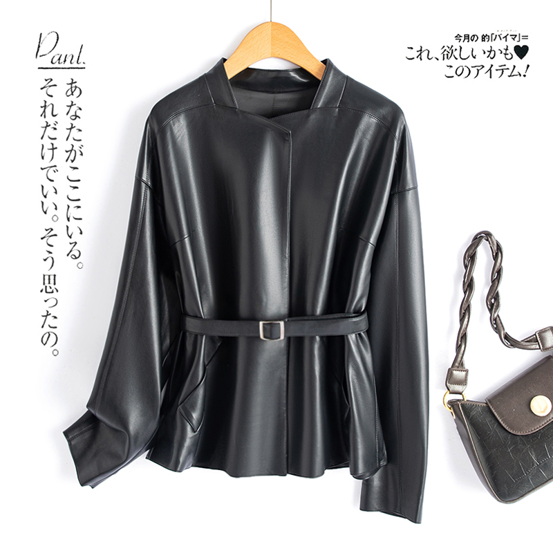 2025春季新款海宁真皮皮衣女短款韩版系带名媛风皮夹克绵羊皮外套