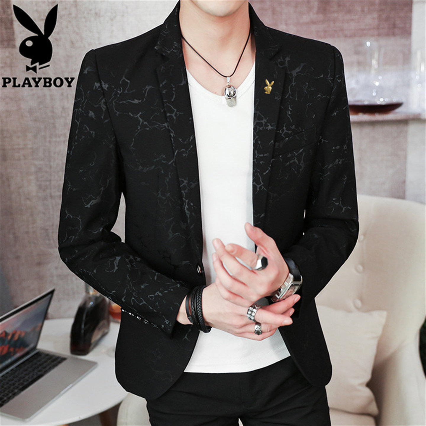 花花公子休闲西装外套男修身西服