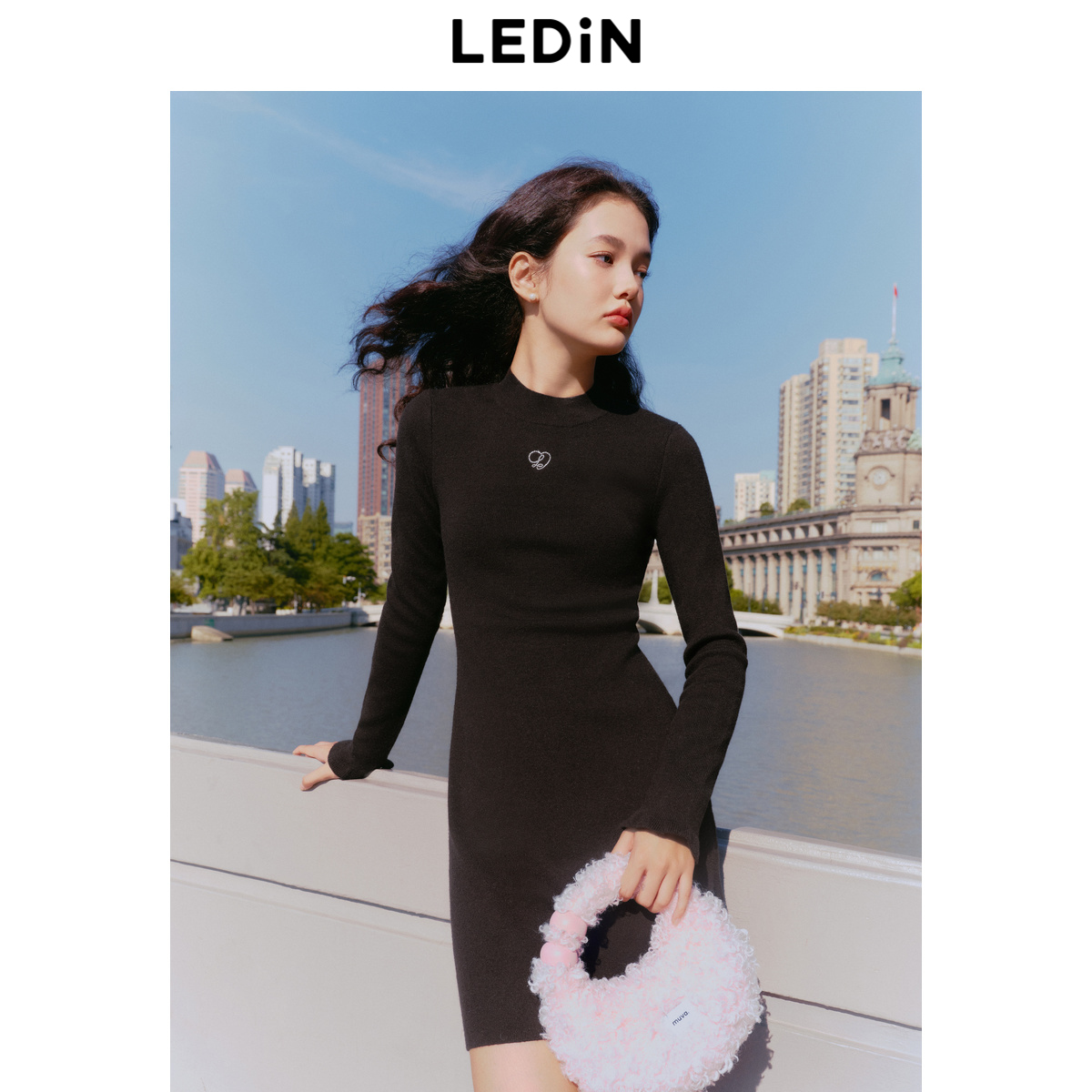 [预]乐町半高领针织连衣