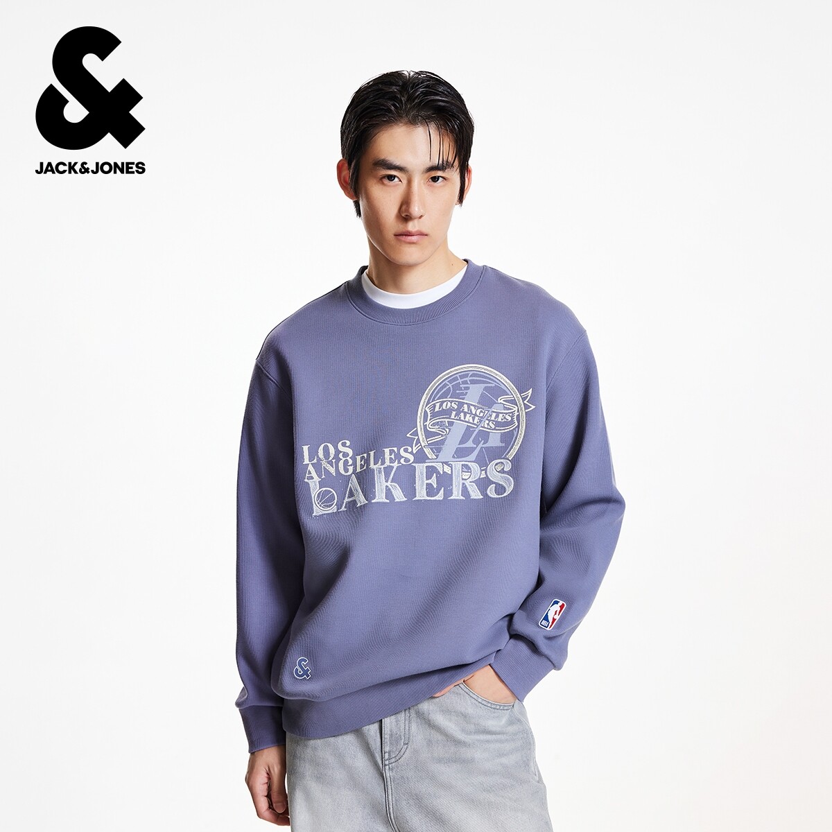 杰克琼斯秋冬男装圆领卫衣NBA联名湖人队字母刺绣图案时尚潮流