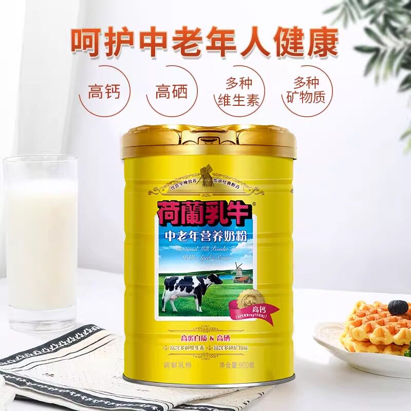 荷兰乳牛中老年营养奶粉老年人高钙高硒0蔗糖早餐牛奶粉900g*2罐