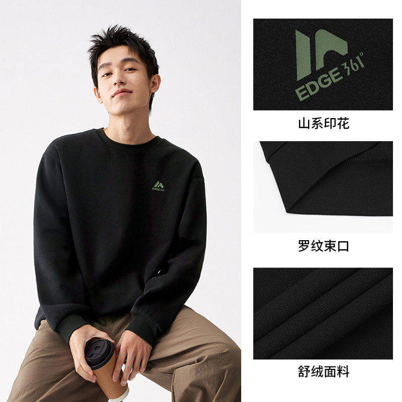 361运动卫衣男2025秋冬新款微宽松抓毛套头卫衣情侣印花休闲上衣