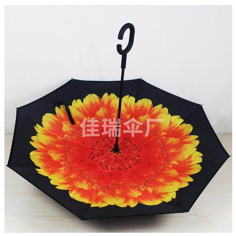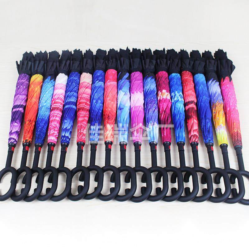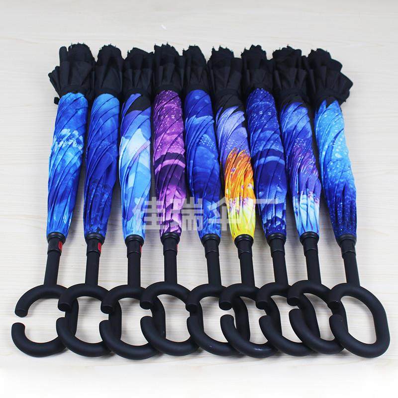 反向雨伞定制可印logo双层手动大号c型车载广告伞男免持式长柄伞