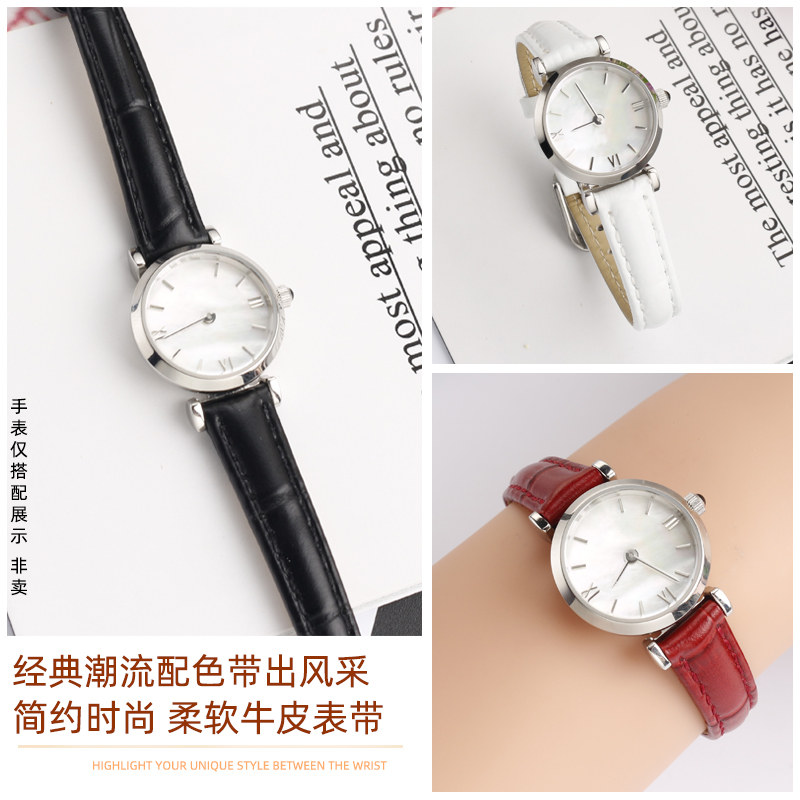 适配阿玛尼白月光真皮手表带 AR1763 AR1764小号女士牛皮表带10mm