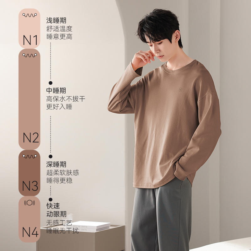 猫人睡衣男士2025夏季圆领套头短袖宽松简约全棉家居服套装高级感