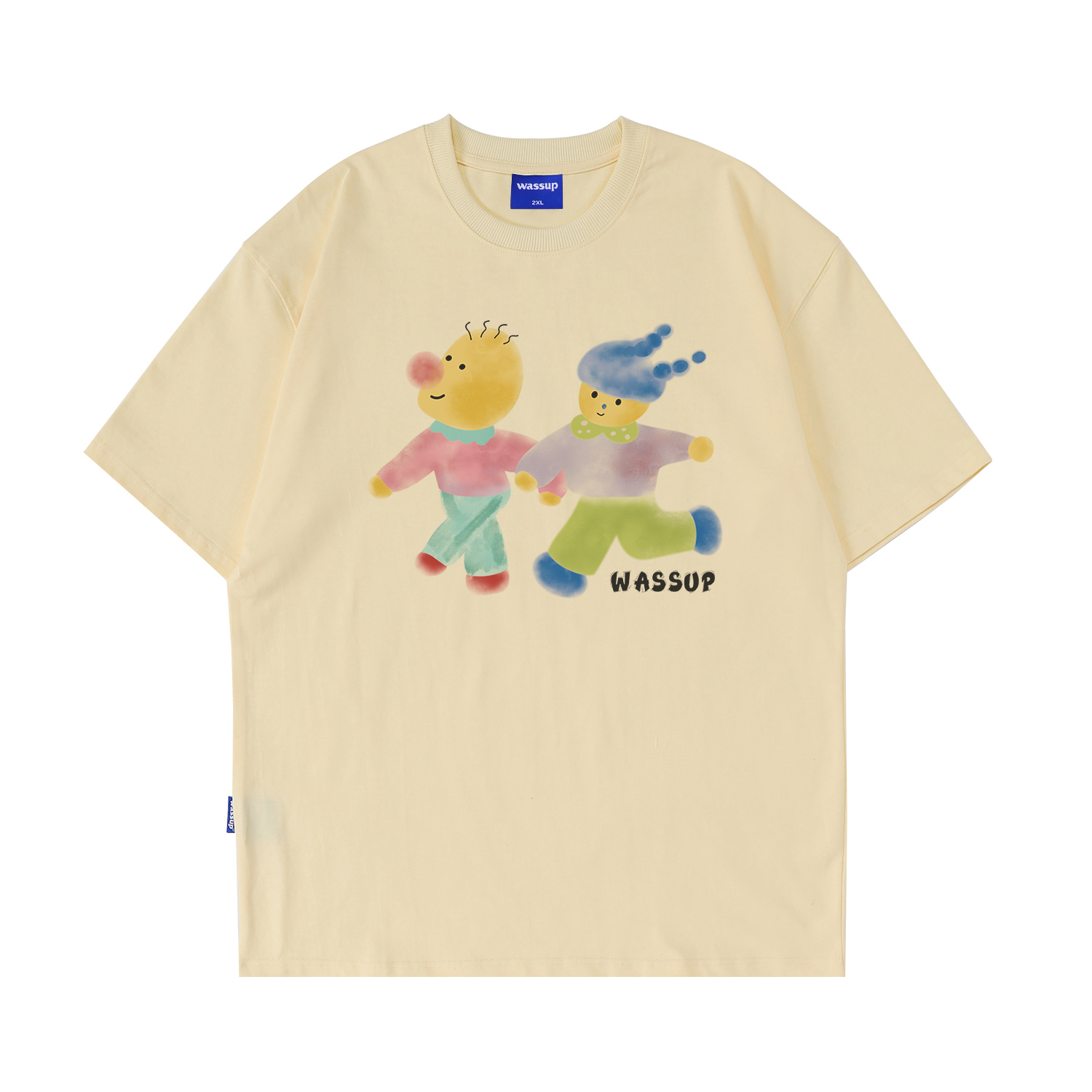 WASSUP潮牌美式喷墨T恤短袖男女同款夏季宽松休闲纯棉情侣上衣服