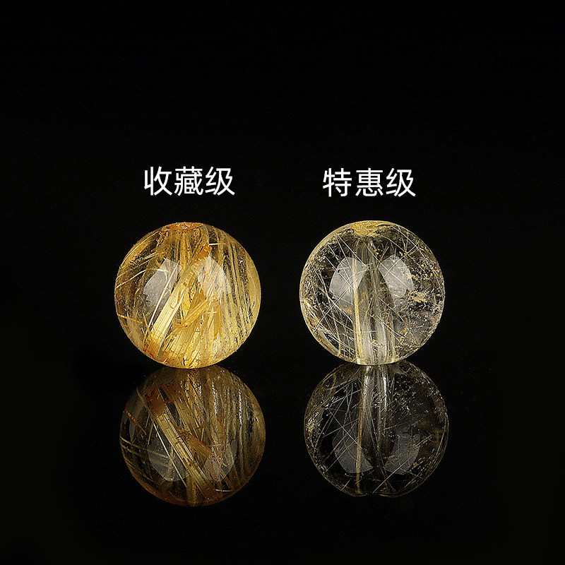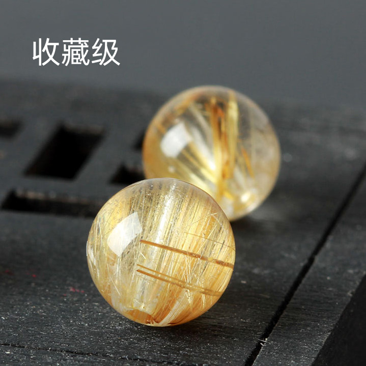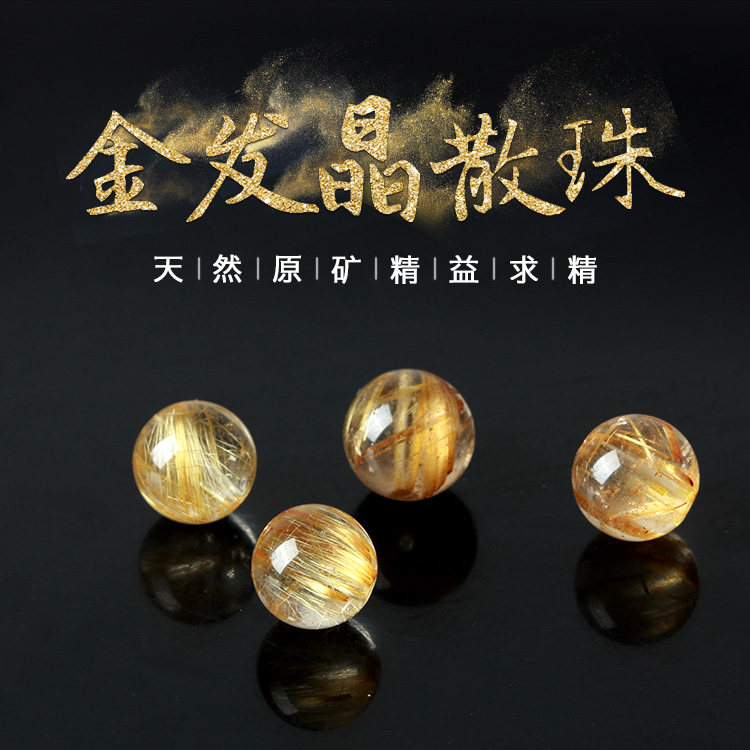 天然金发晶散珠 钛晶圆珠散珠 DIY饰品配佛珠108颗多宝手串兔毛丝