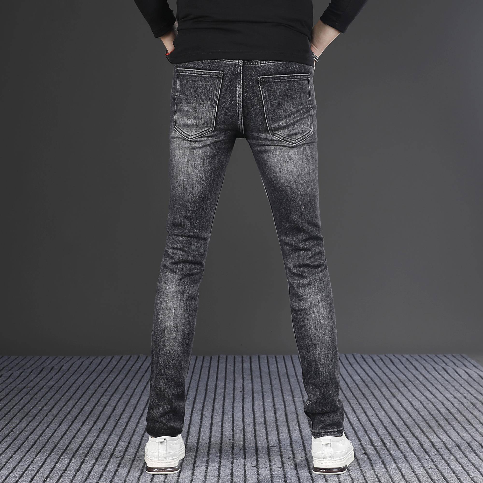 男士黑灰色牛仔裤修身小脚2025新款潮流感弹裤子秋冬1018h