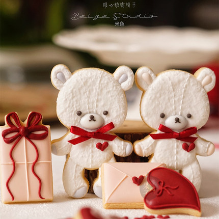 韩式情人节爱心熊糖霜饼干模具 卡通布偶熊信封情书翻糖烘焙工具