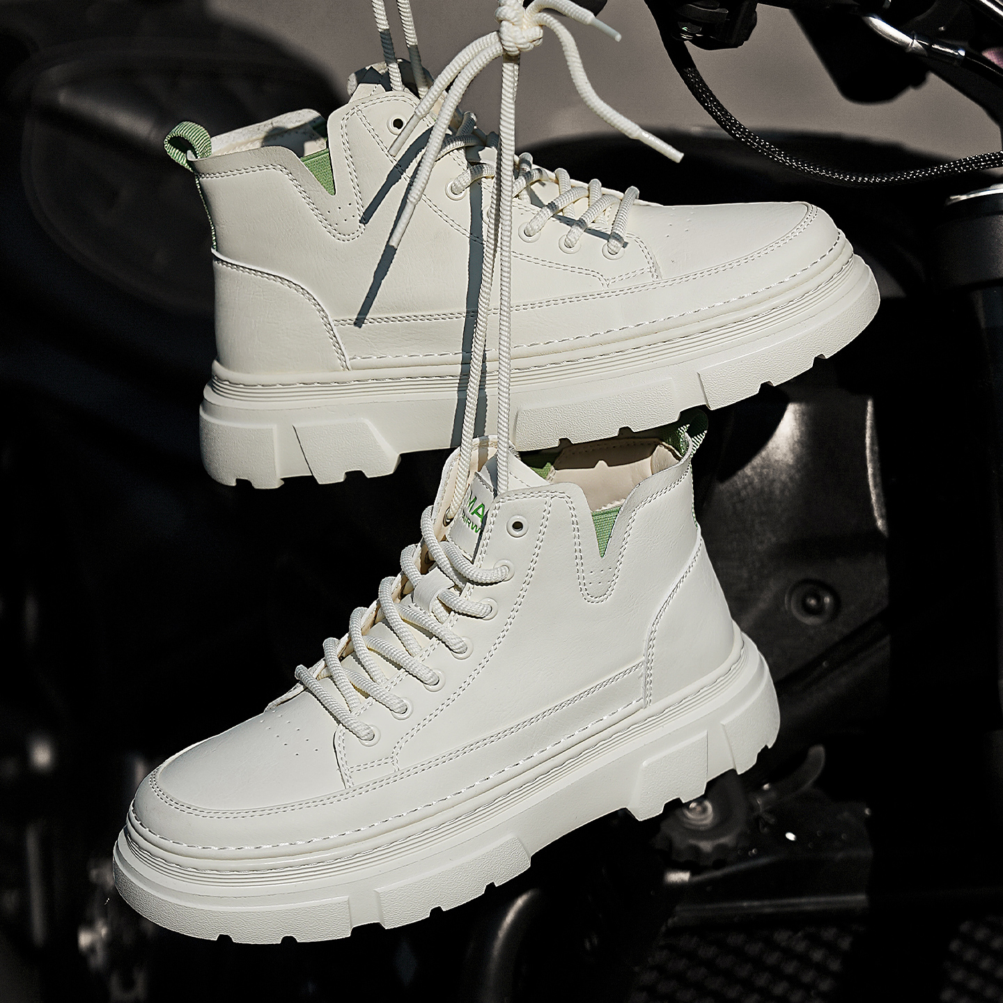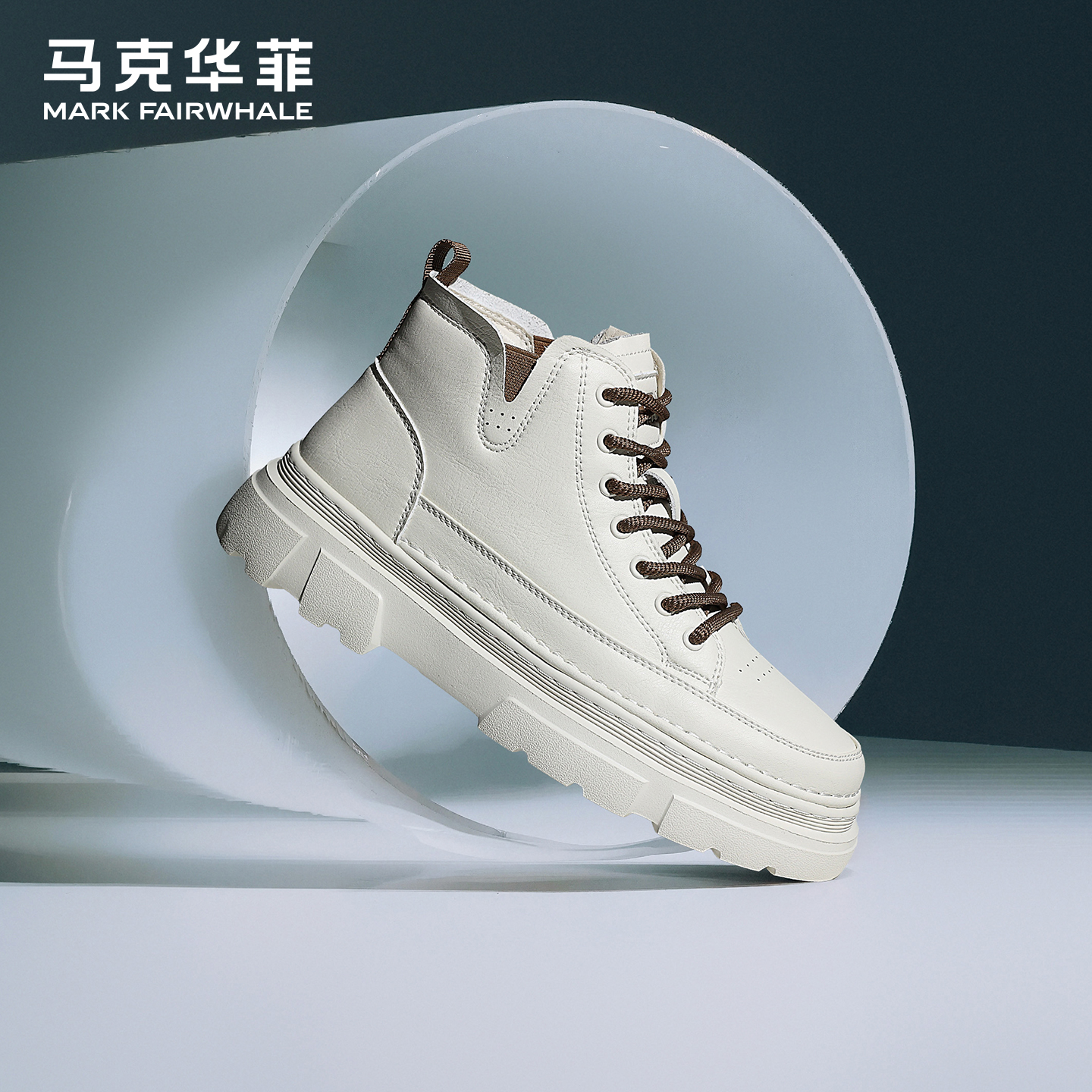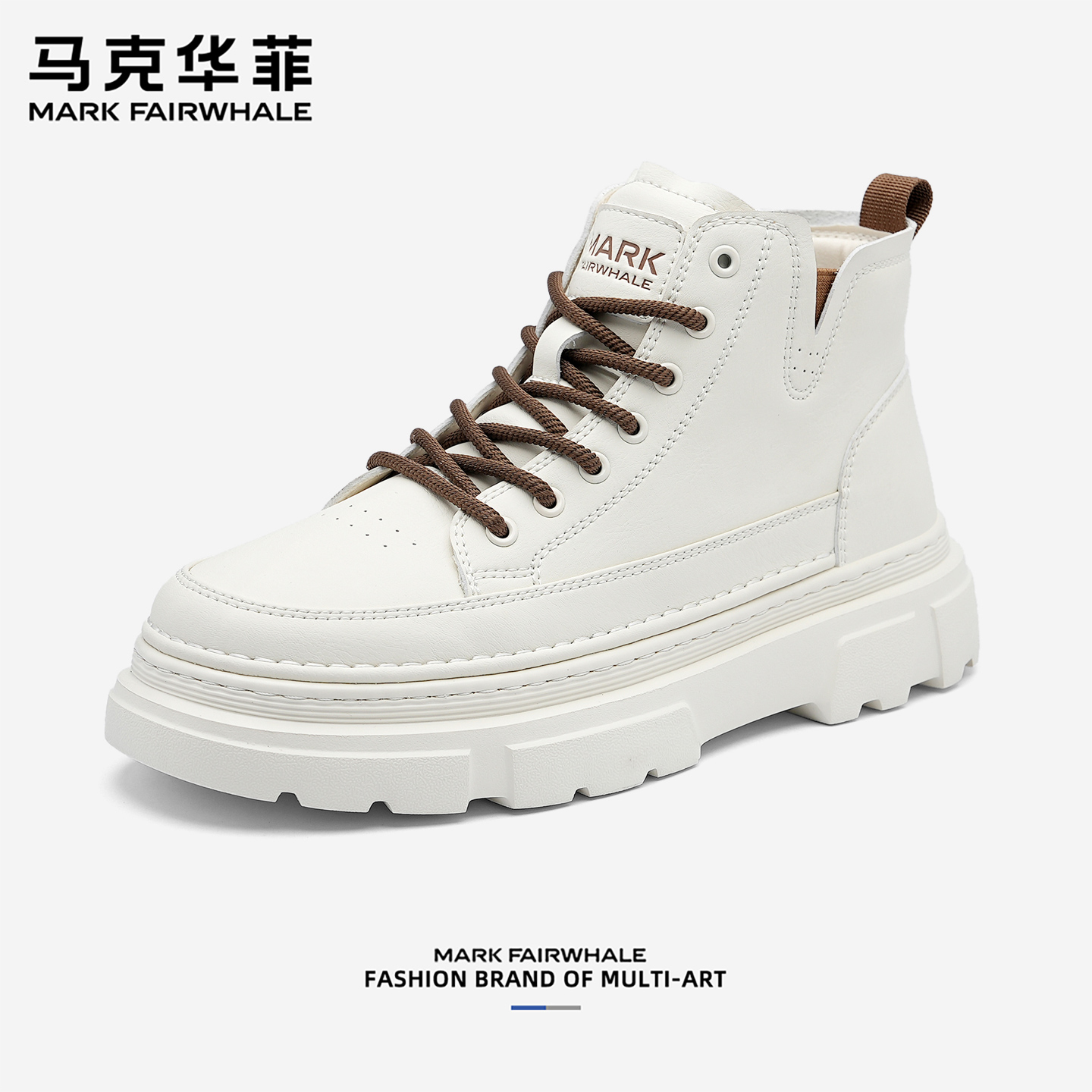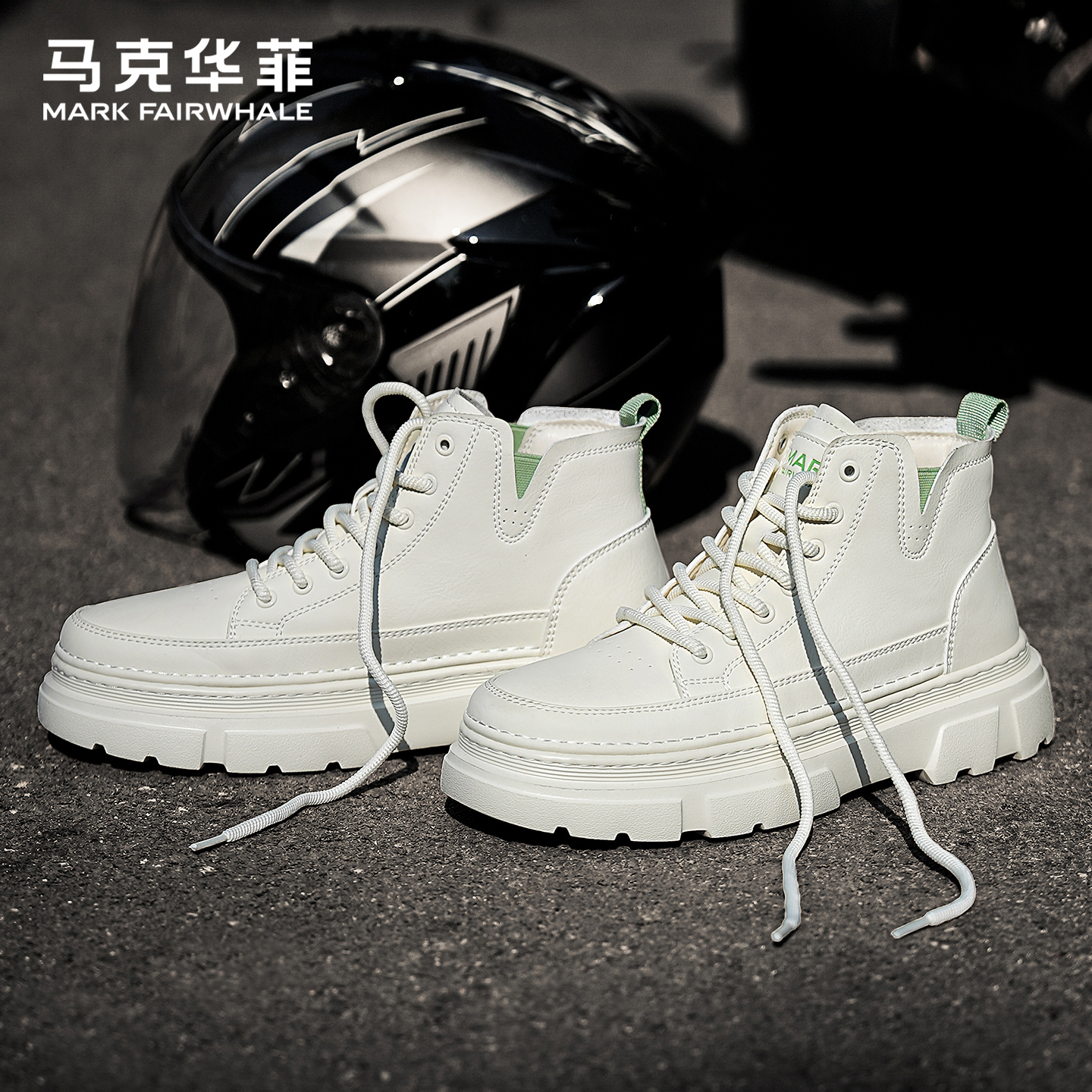 马克华菲马丁靴男款2025新款白色靴子秋冬季鞋子切尔西靴高帮男鞋