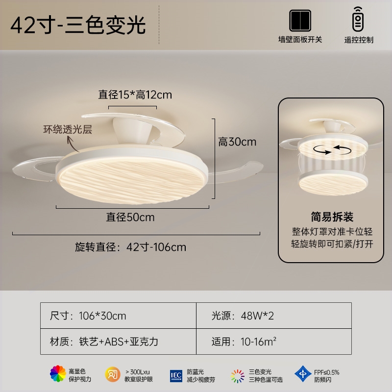 扇灯电扇灯无叶风扇灯卧室书房客厅专用2025年新款餐厅吸顶简约吊
