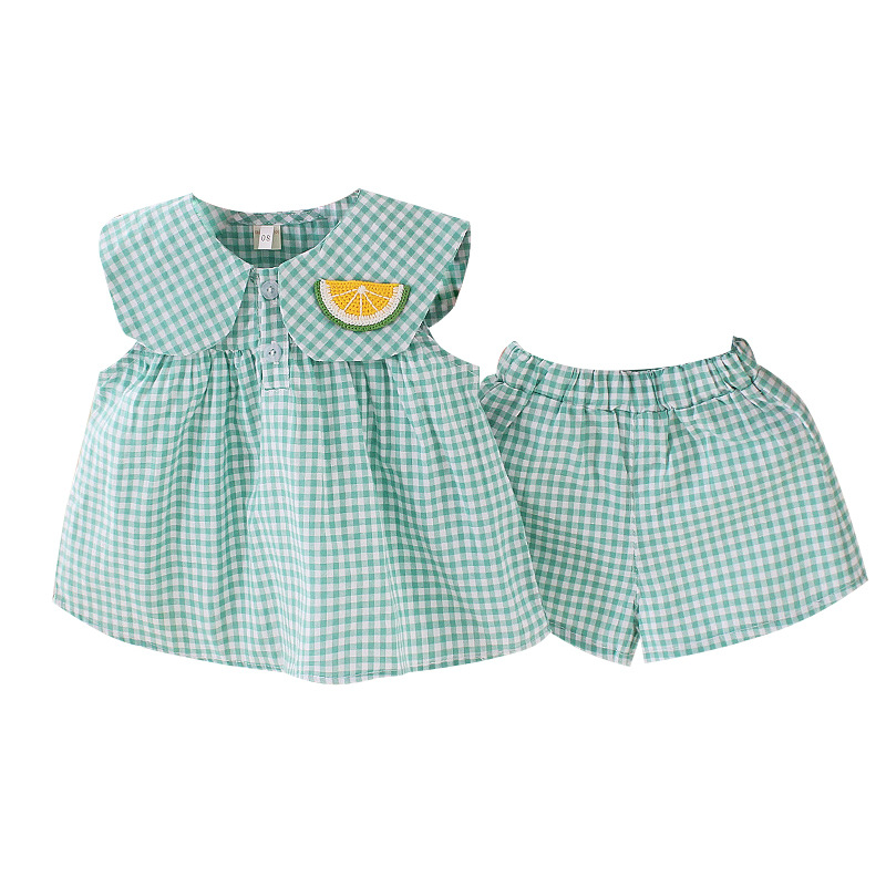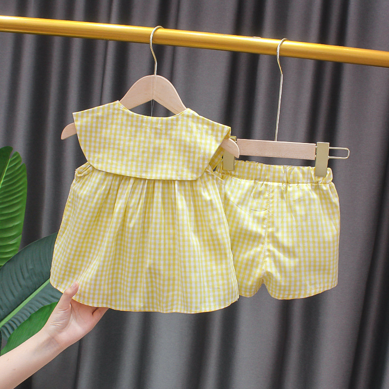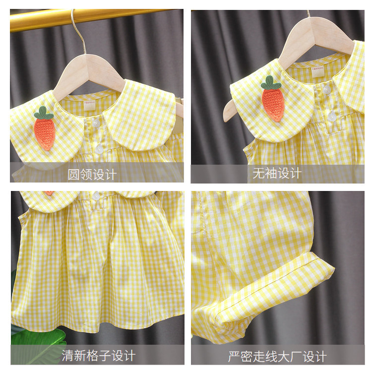 女童夏季套装薄款格子宝宝上衣韩版洋气娃娃领无袖两件衬衣1-3岁
