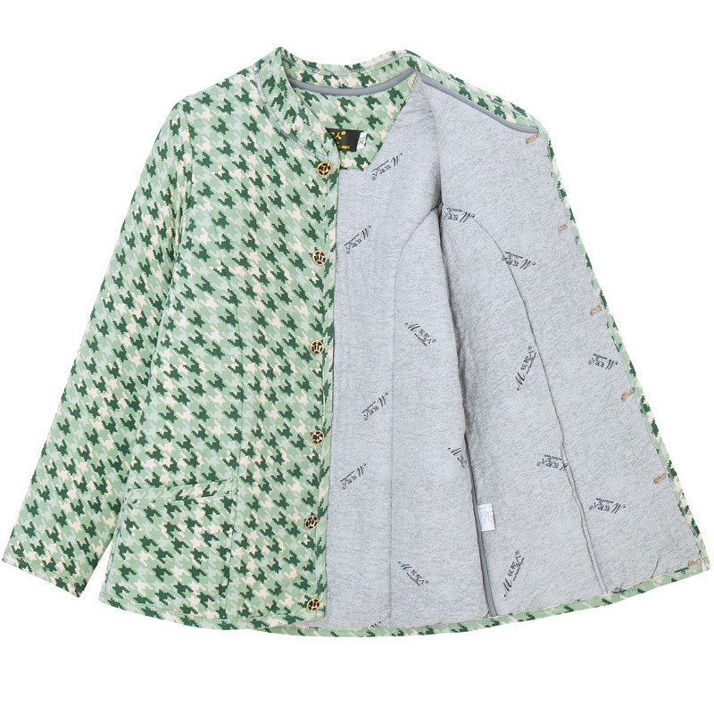 清新的千鸟格驼绒保暖棉袄