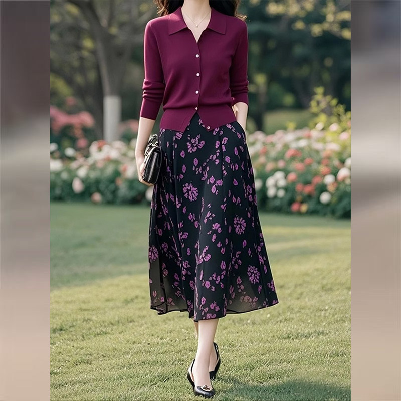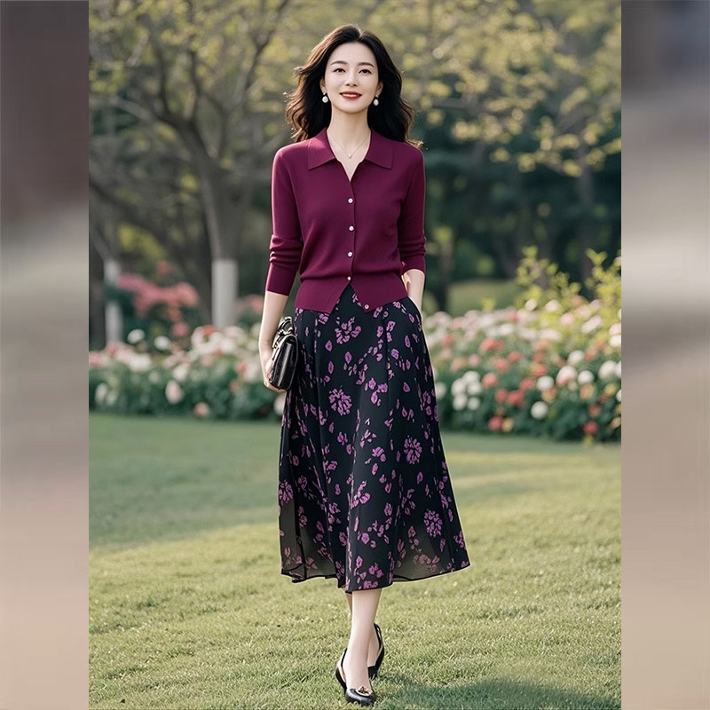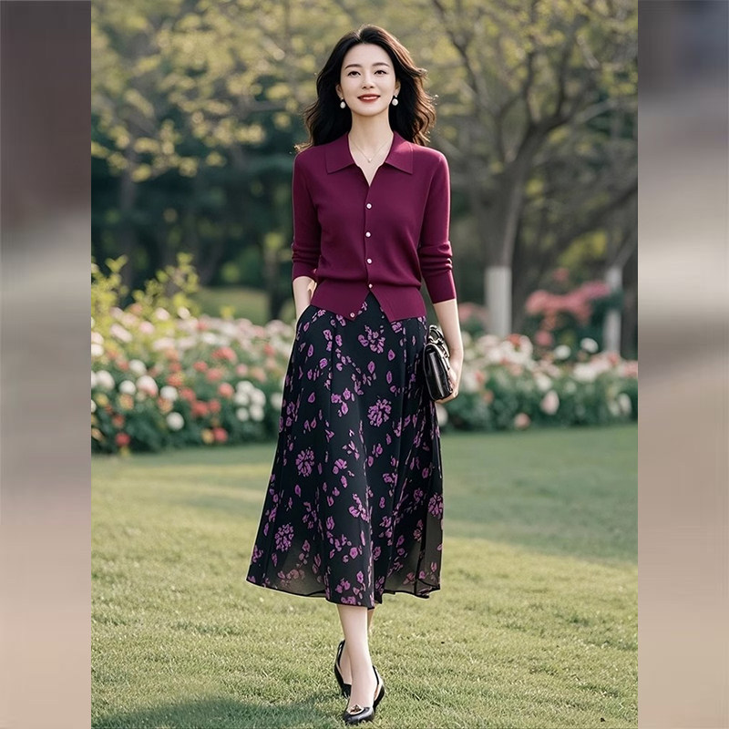 素雅订制女装原创品牌旗舰店2025新款温柔穿搭针织衫+半身裙套装