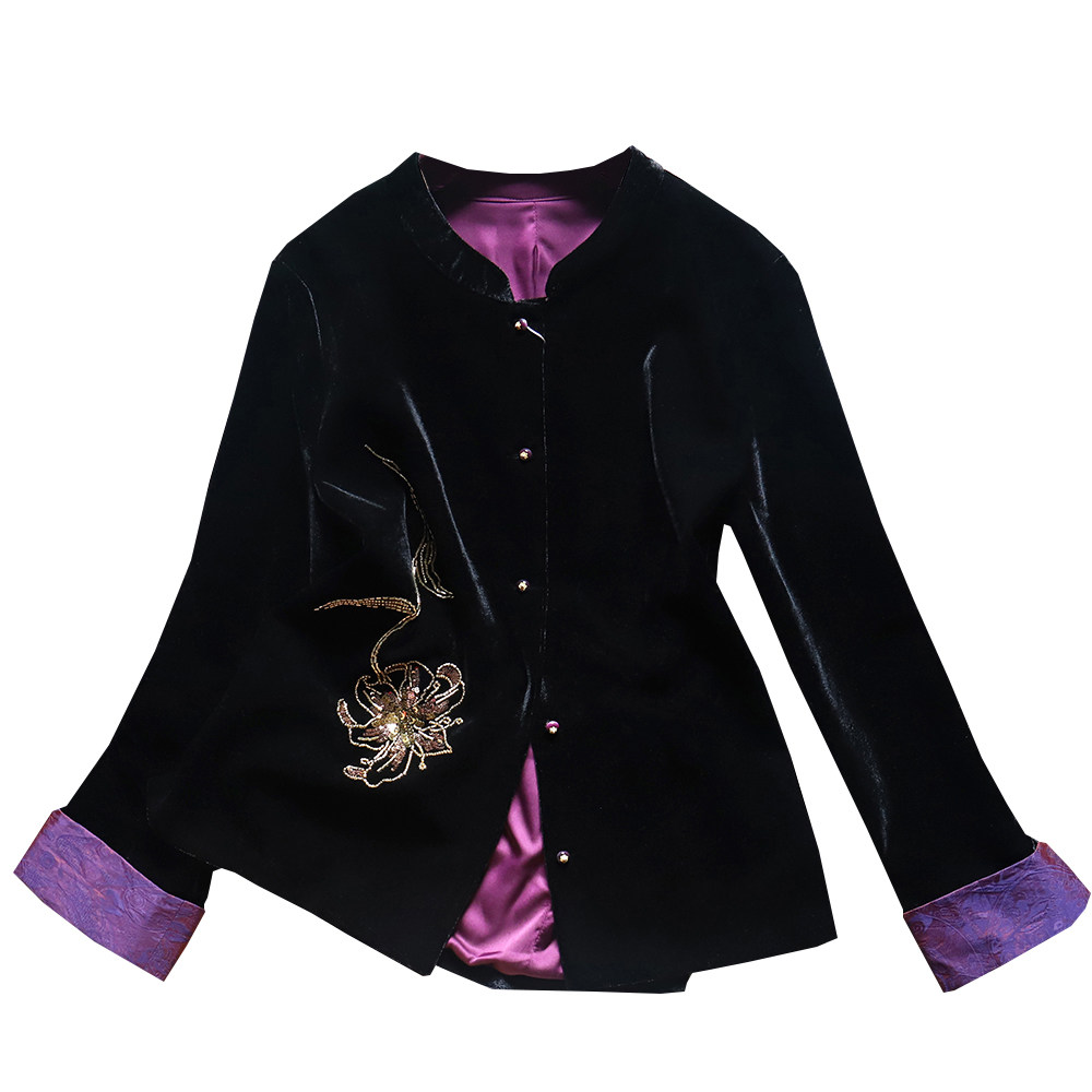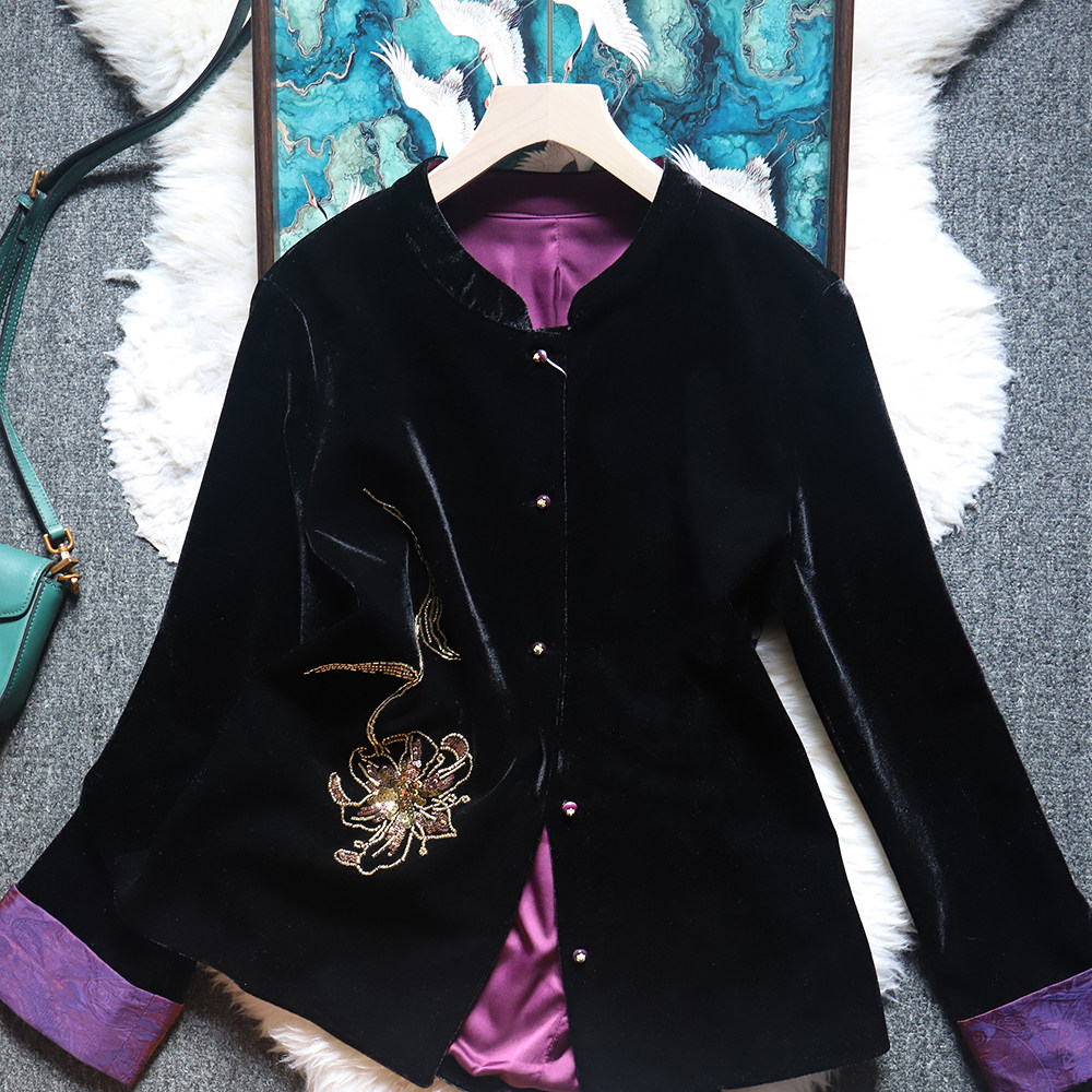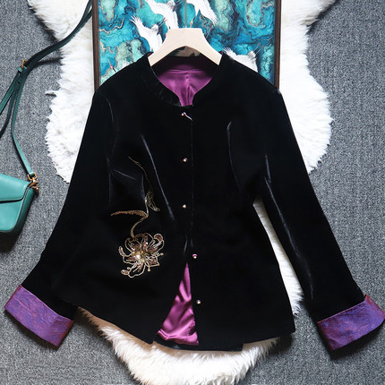 新中式国风感刺绣紫色气质独特上衣2026春装新高级金丝绒短外套女