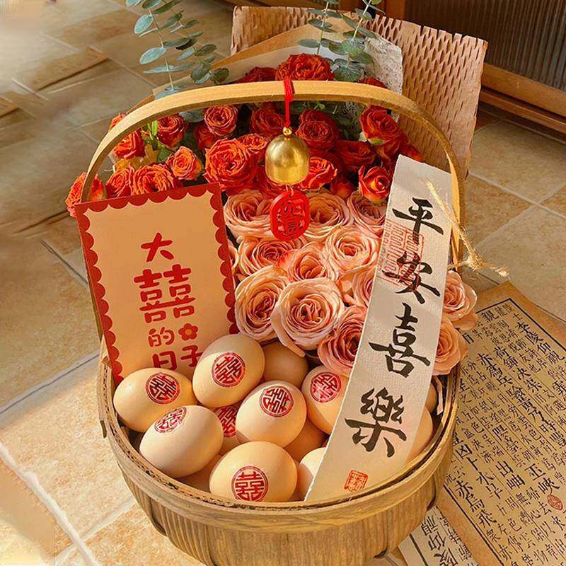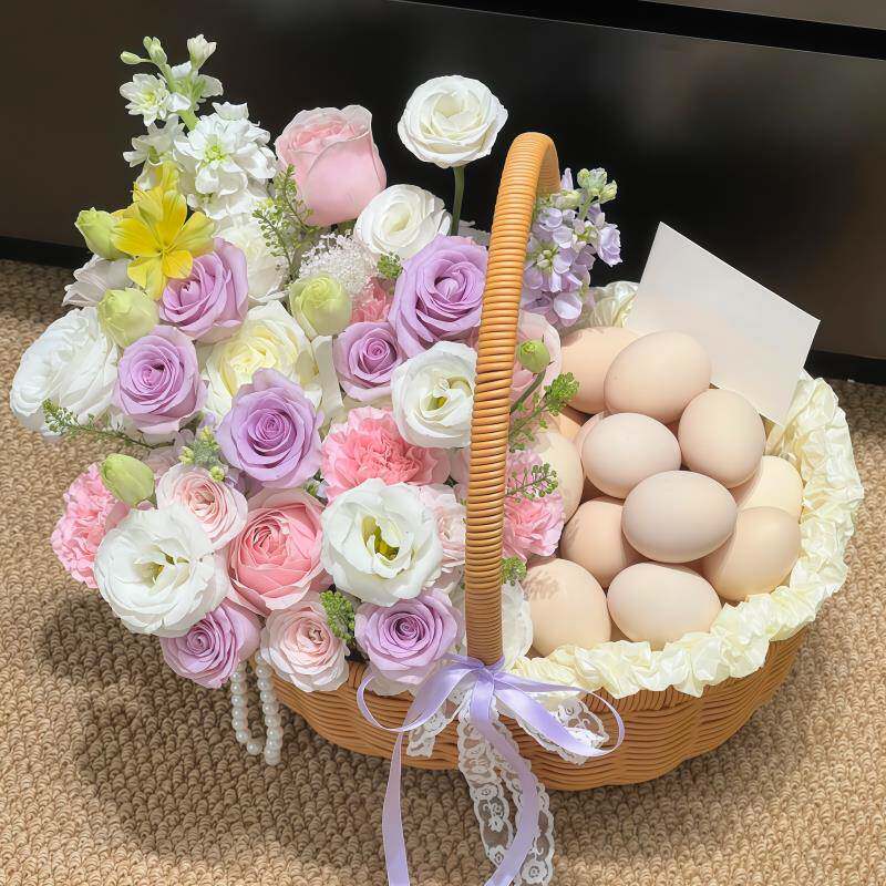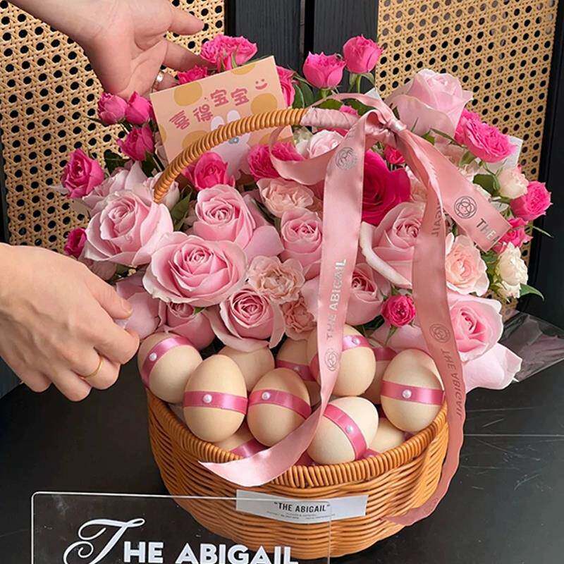 月子鸡蛋手提花篮成品鲜花同城速递全国配送产妇闺蜜生日礼盒深圳