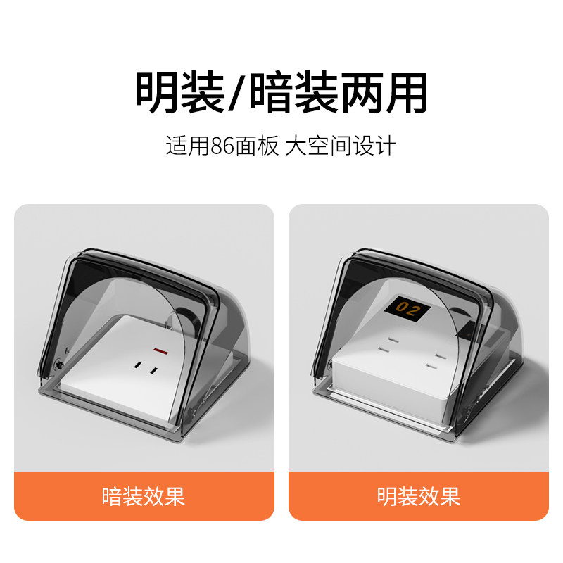 86型卫生间插座防水罩自粘款智能马桶插头保护加高加大漏保防溅盒