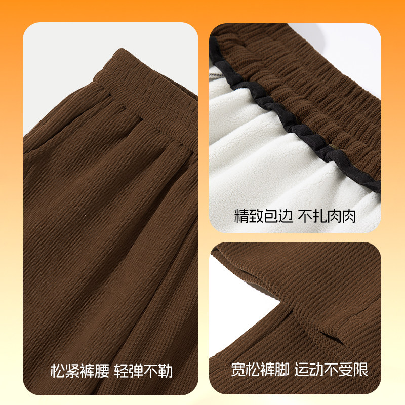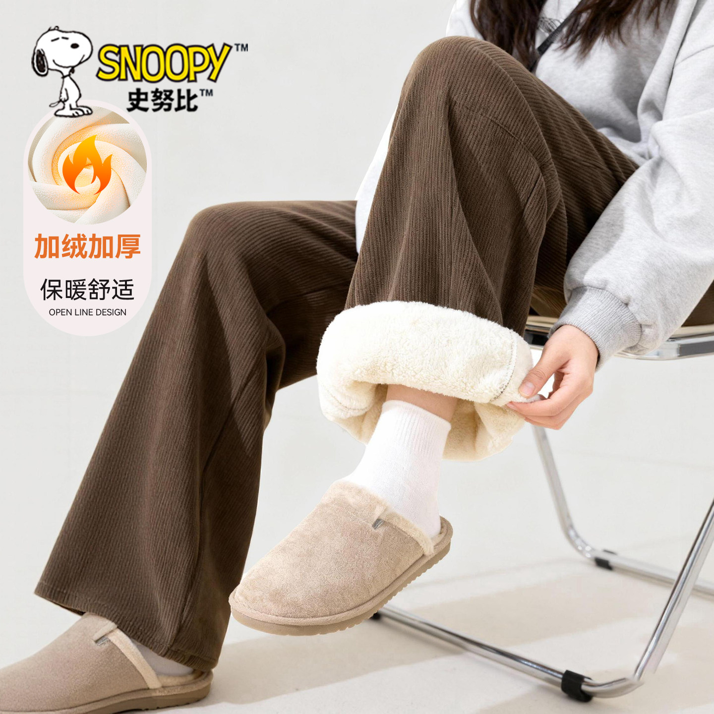史努比女童加绒裤子2026新款冬加厚一体绒女孩阔腿裤儿童灯芯绒裤