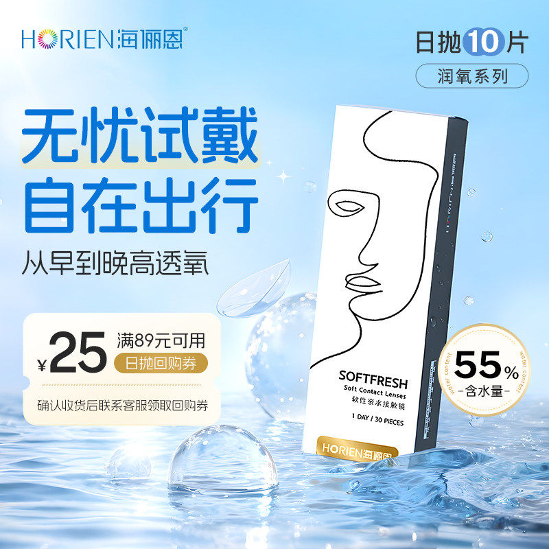 【试戴尝鲜】海俪恩润氧日抛5片隐形近视眼镜舒适水润正品旗舰店