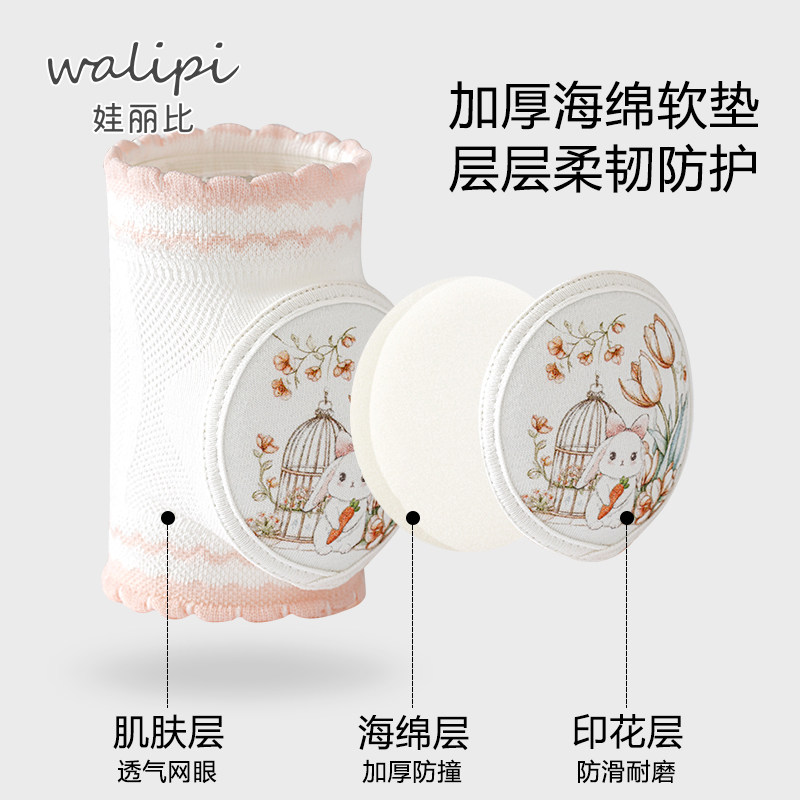 儿童护膝夏季薄款宝宝爬行护膝婴儿防摔学步学爬膝盖加厚护垫网眼