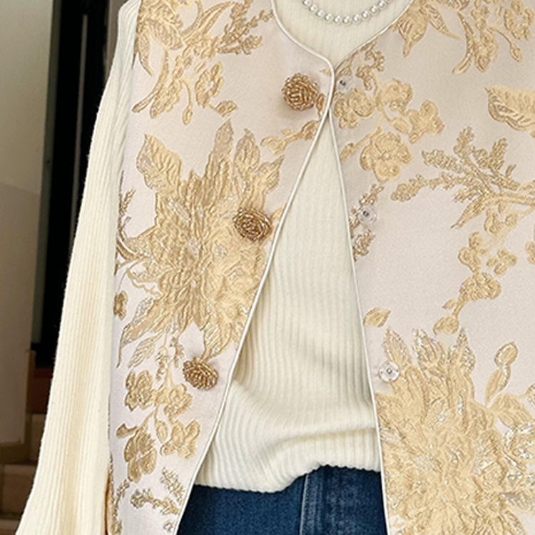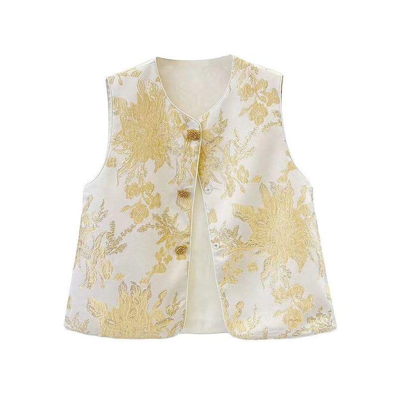 新中式国风女装2025开春气质名媛高级感独特漂亮金色提花马甲外套