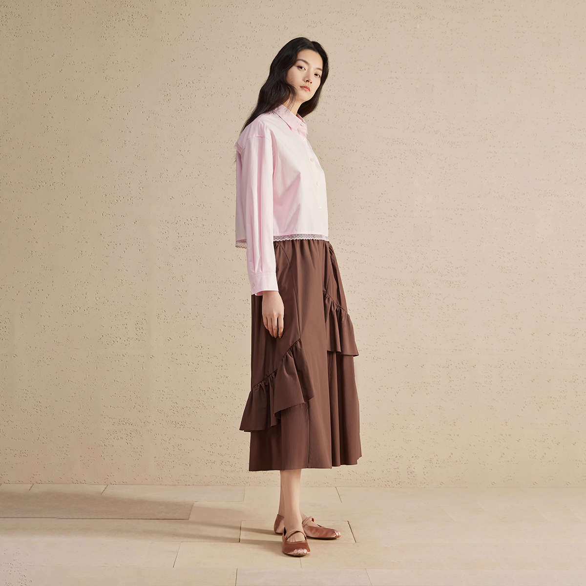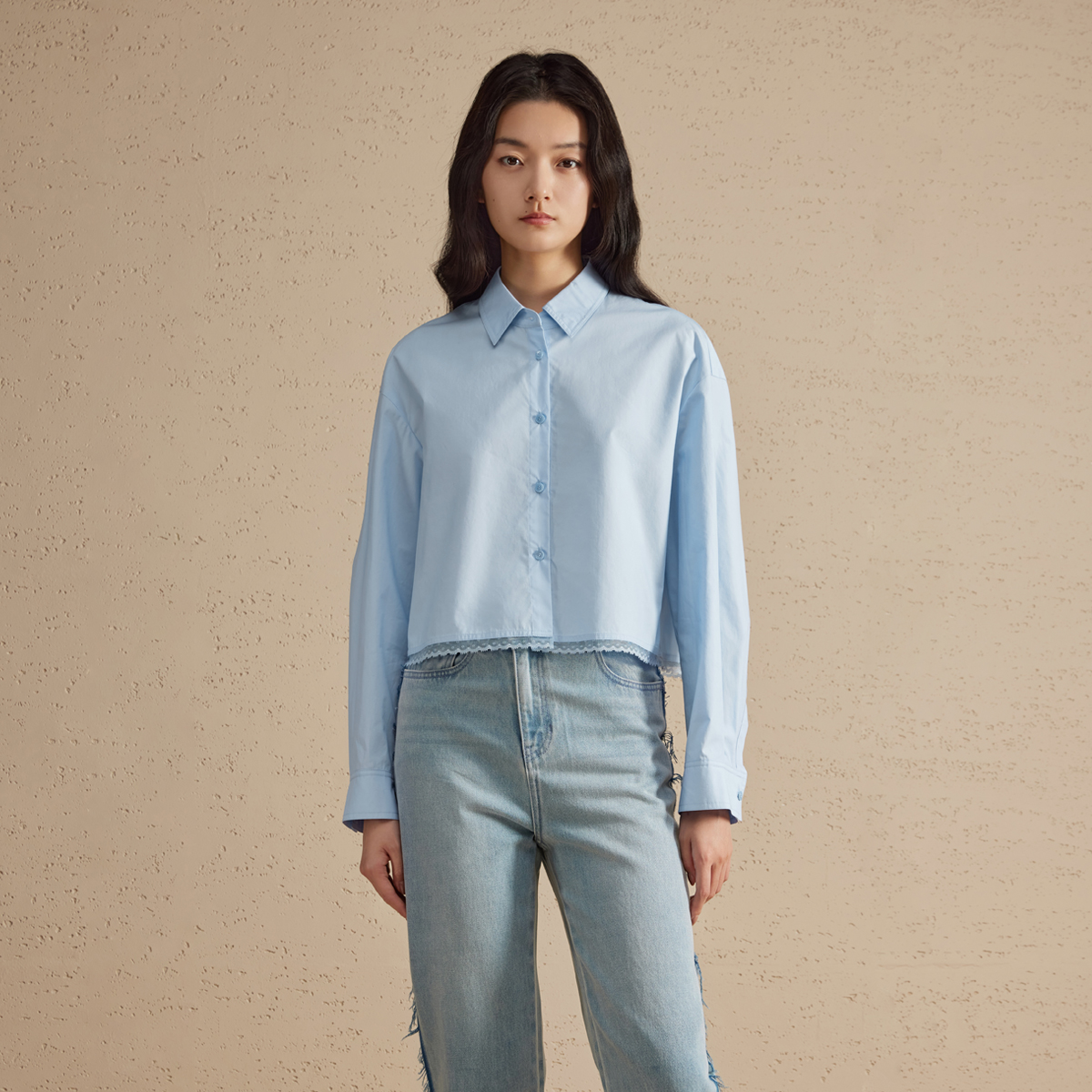 播蕾丝拼接衬衫女2024春季新款设计感宽松长袖内搭衬衣DDR2CD5507